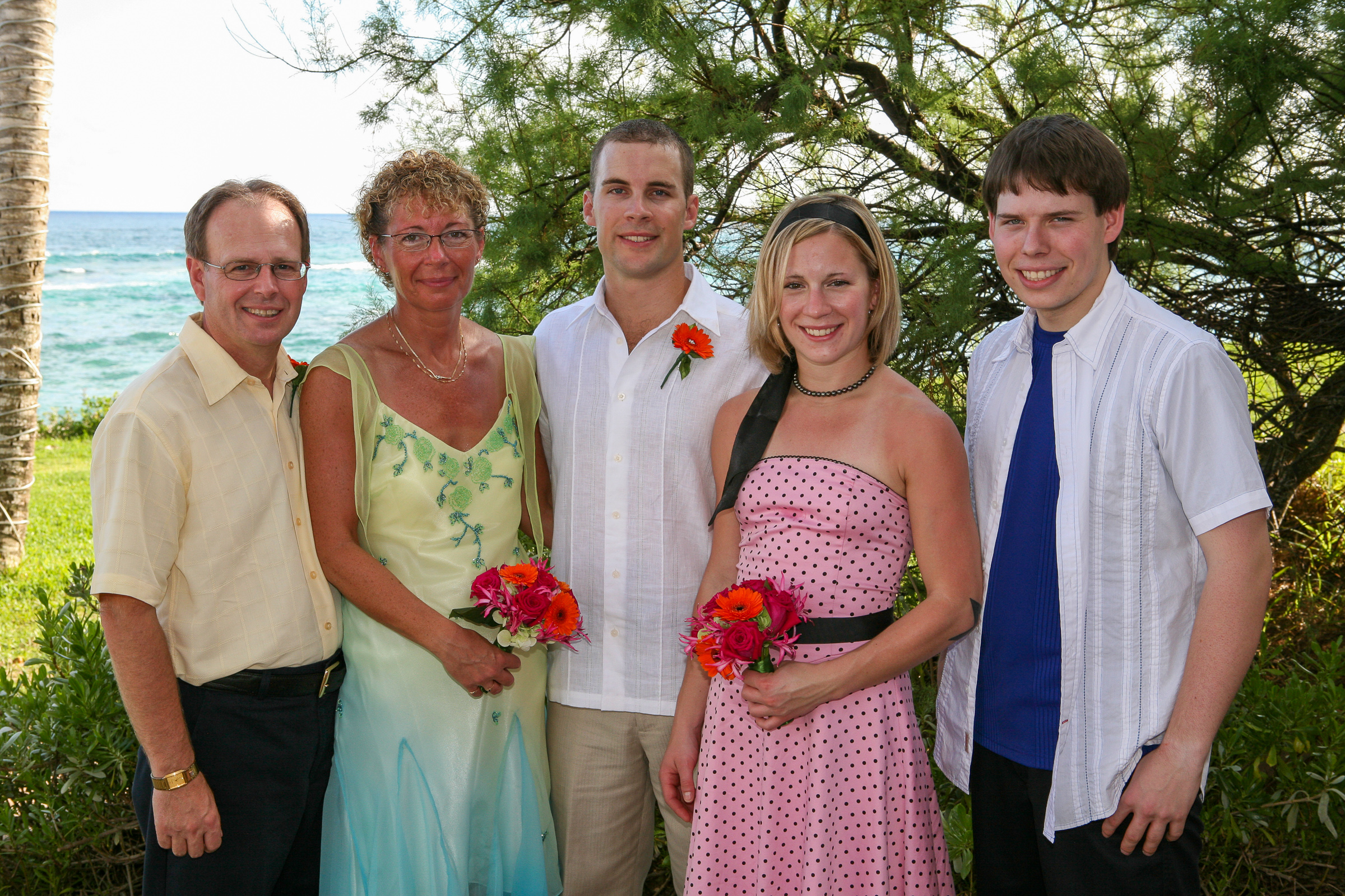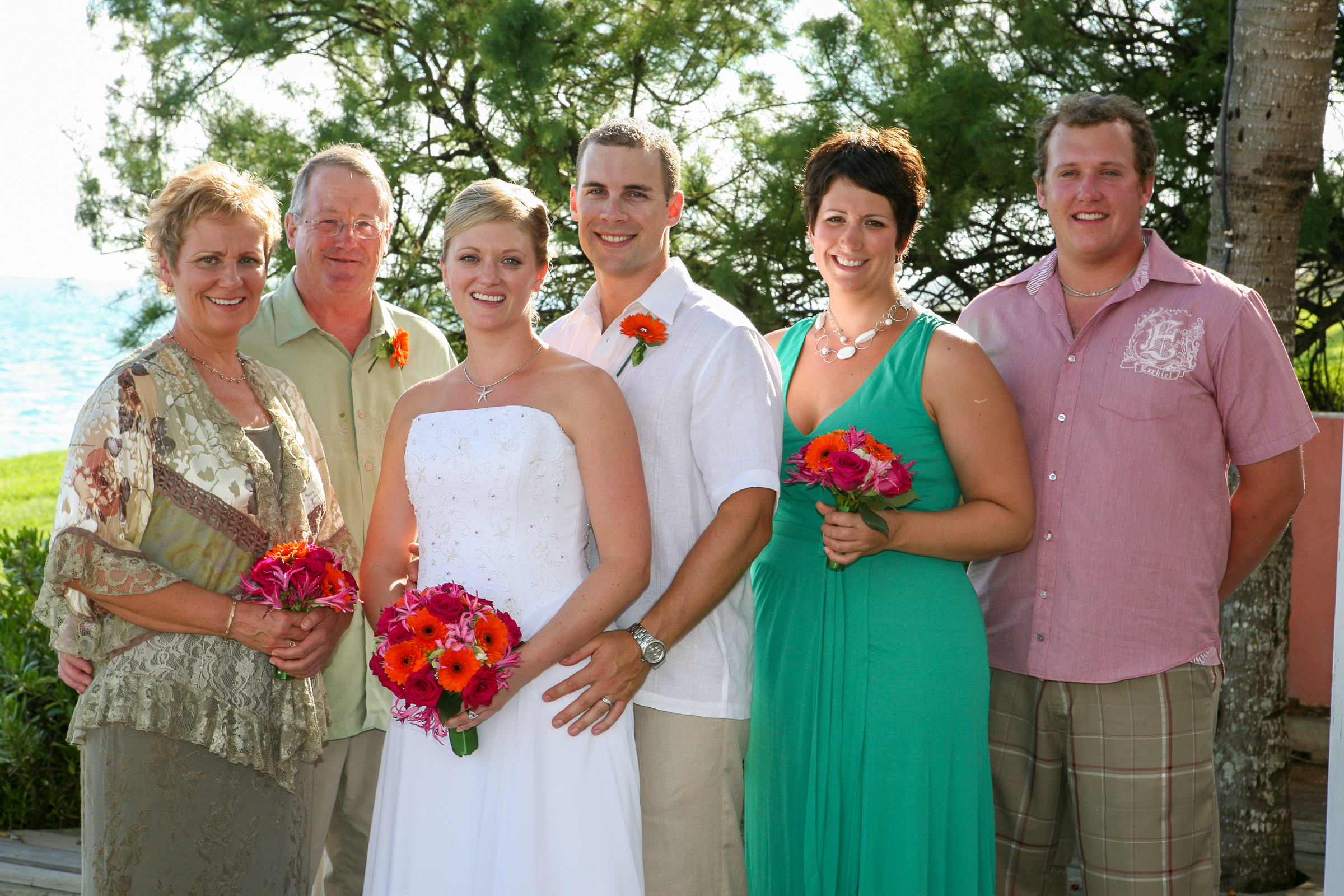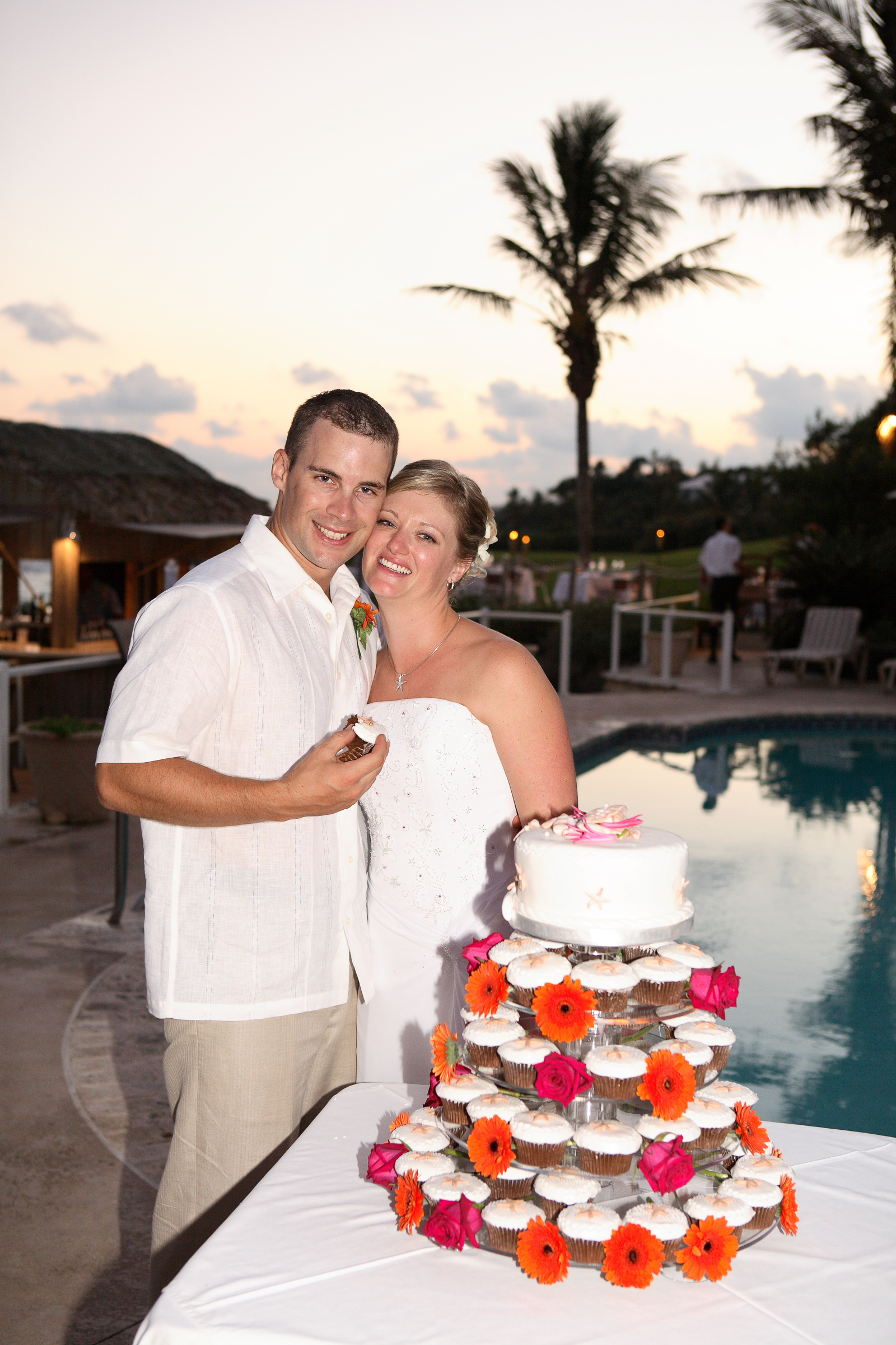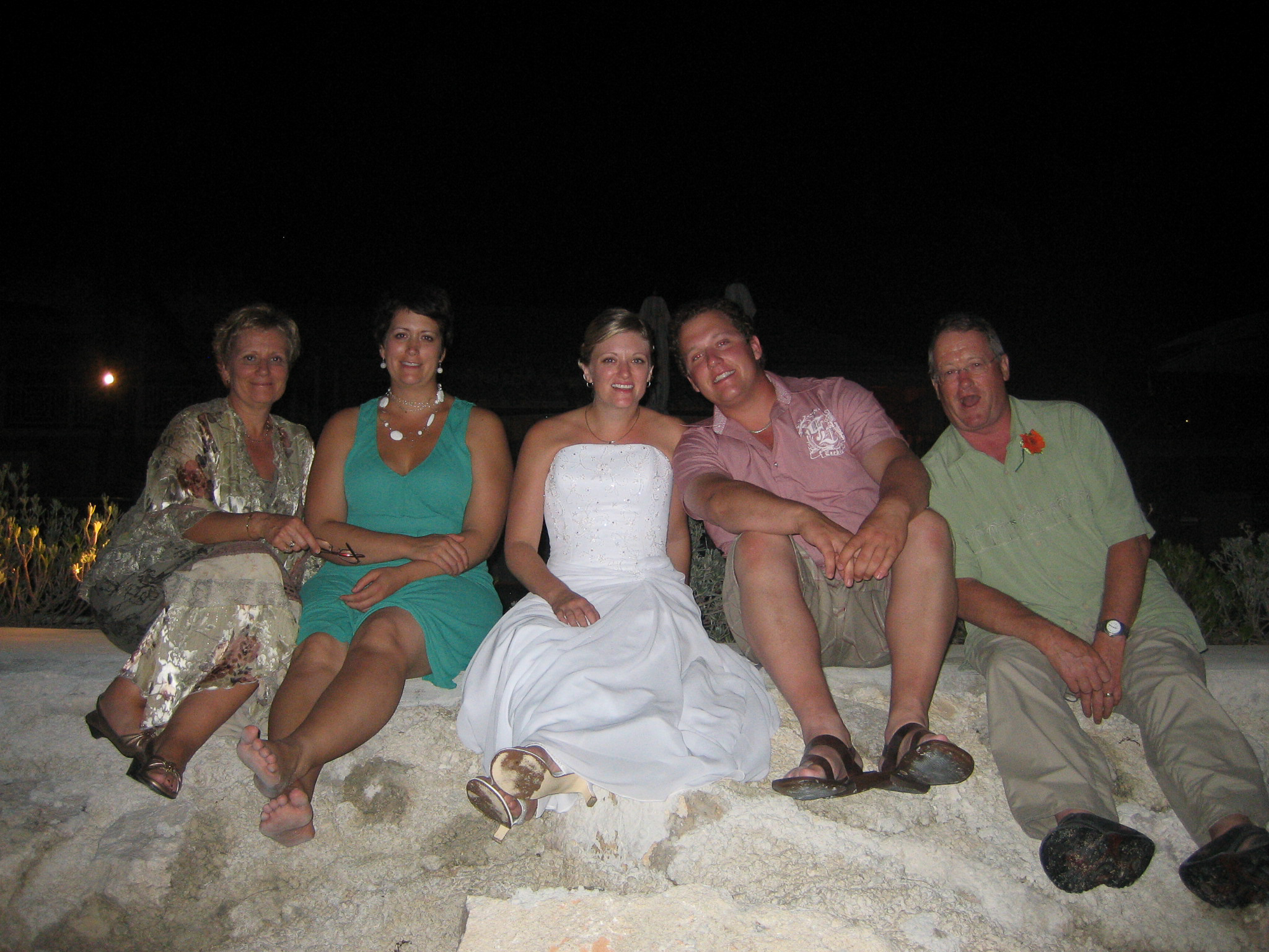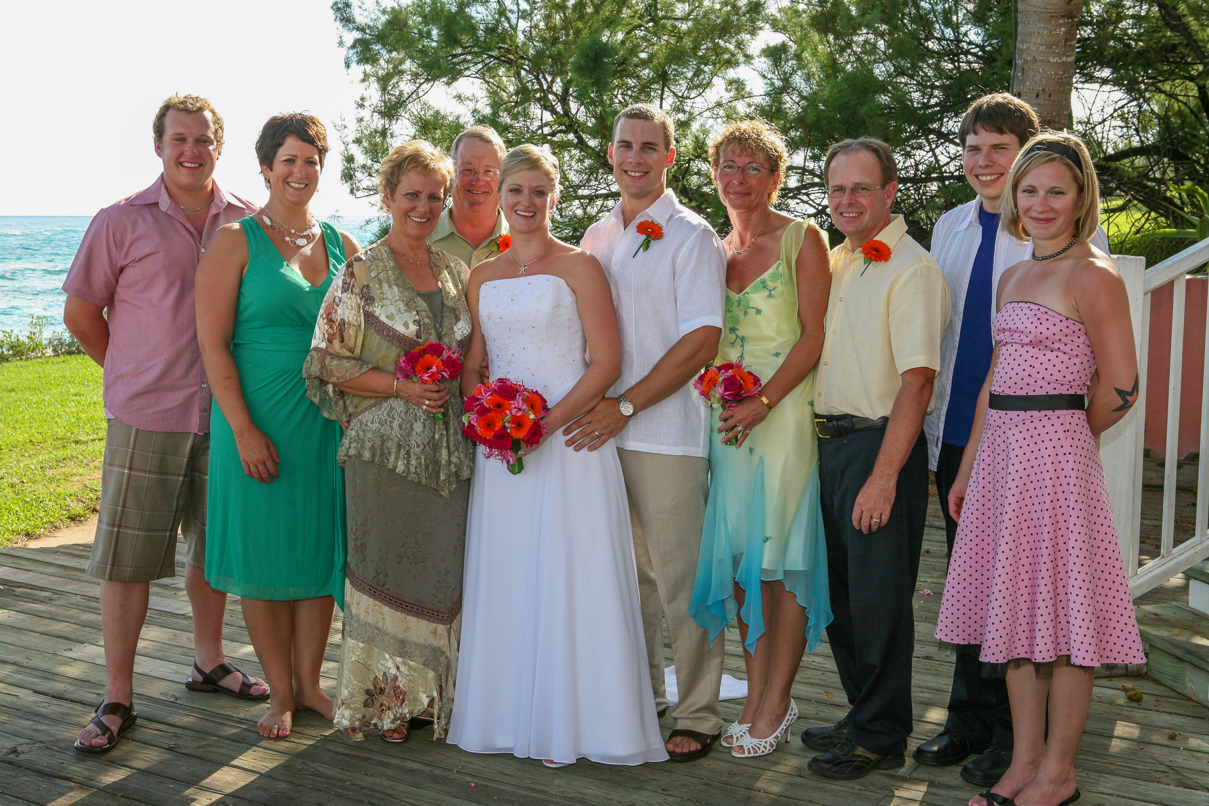 We were married in front of friends and family at Ariel Sands Resort. About 30 of our closest friends from Bermuda were there, plus our immediate families (parents, brothers & sisters) flew in along with Jenn’s friend Leanne and my friend Mark. The ceremony started around 5pm, and lasted a whole 20 minutes – nothing like getting to the point! After the ceremony, we were whisked away by our photographer, Sacha Blackburne, to take pictures on and around the beach. It was a lot of fun – she had us doing all sorts of things, including one of our favorite pictures of us rocking in a hammock. She had a lot of great ideas, it helped that she was very familiar with the location – we have all sorts of beautiful pictures to choose from, she captured everything: having fun on the beach, our new extended families, our friends, and of course the more tender and serious moments of the day. And don’t forget the cake!