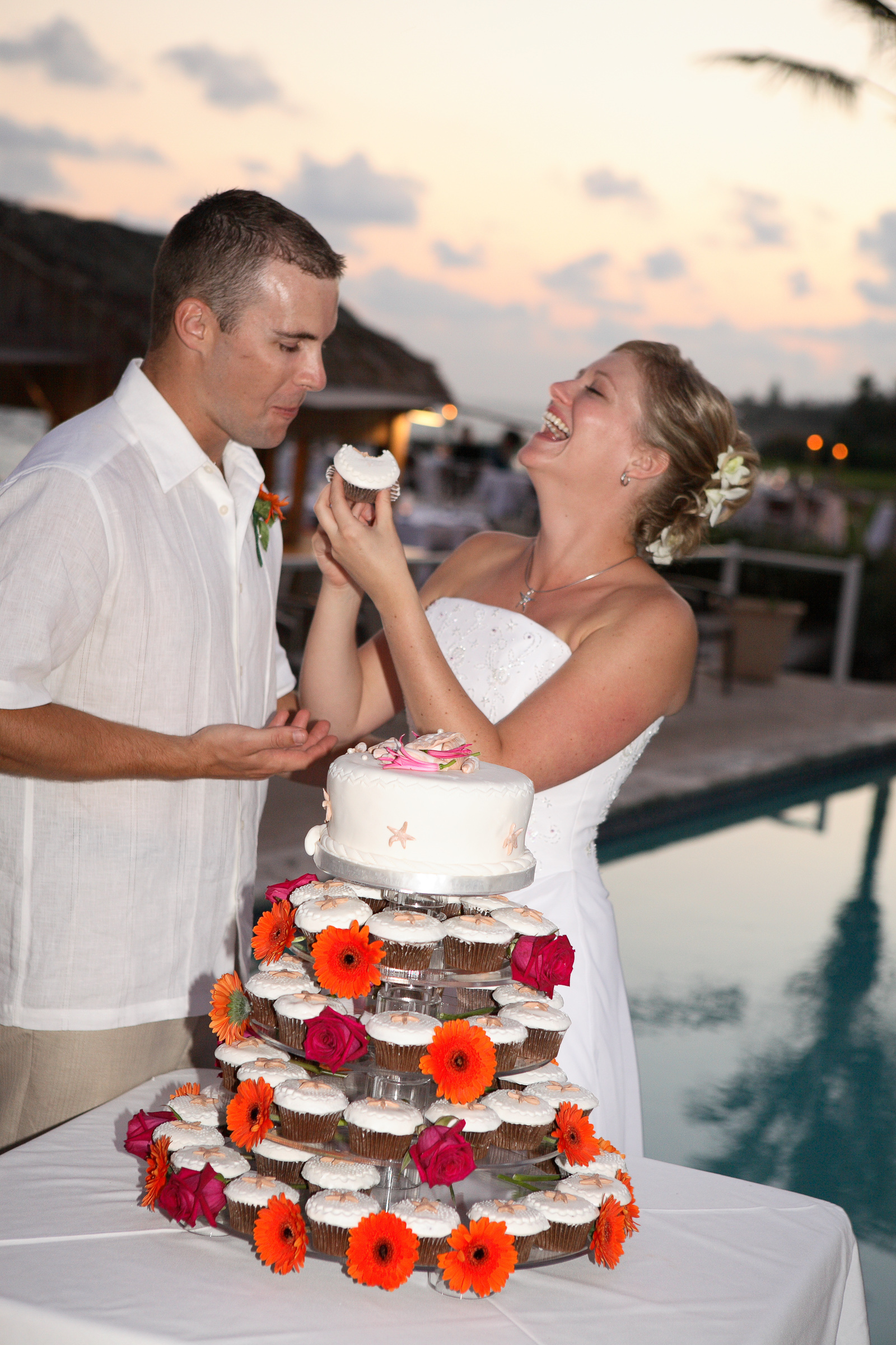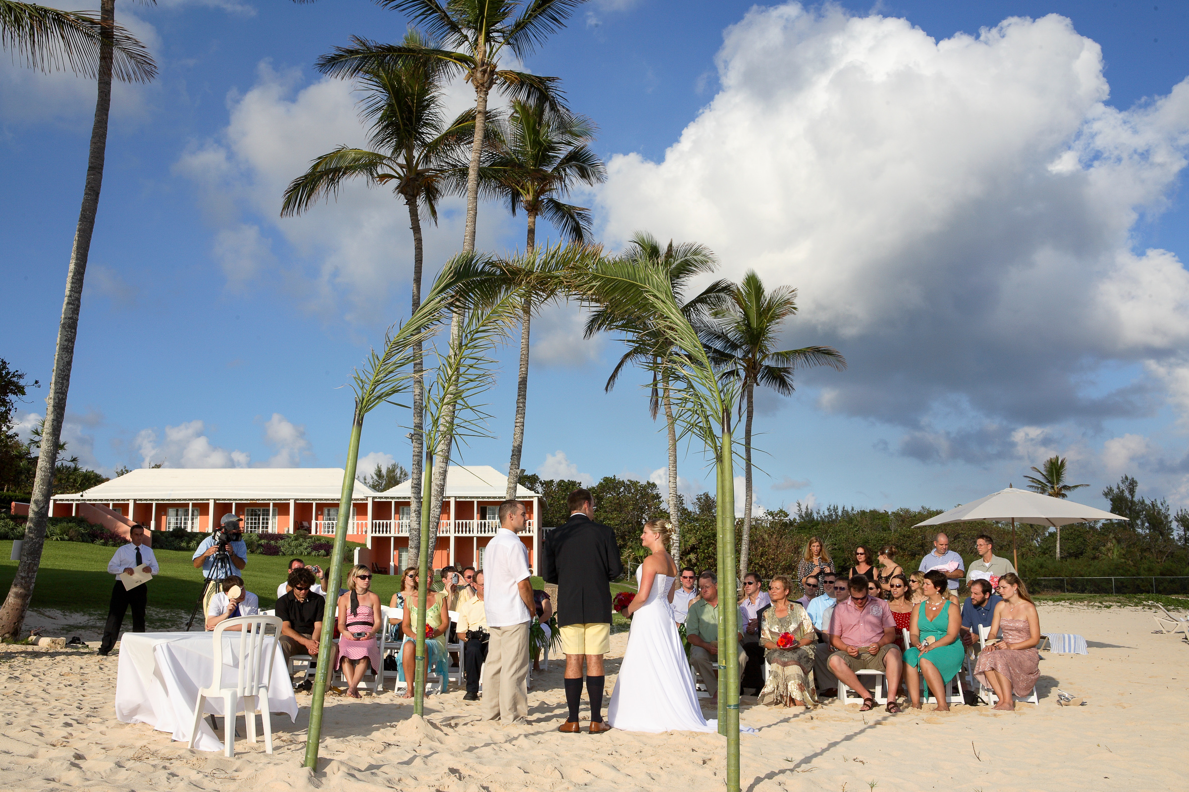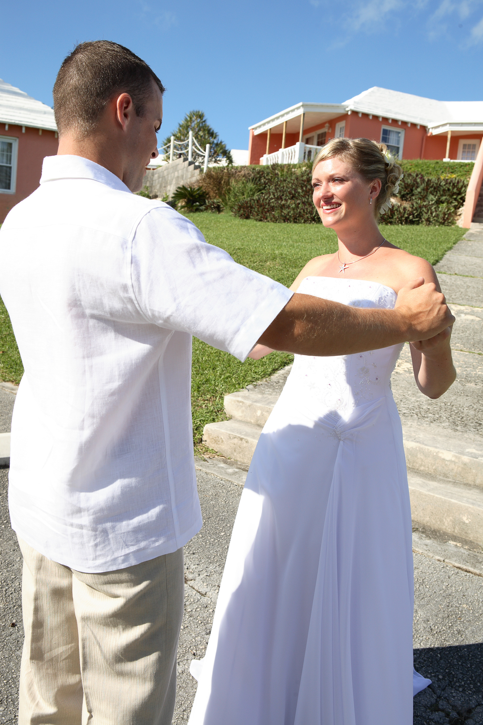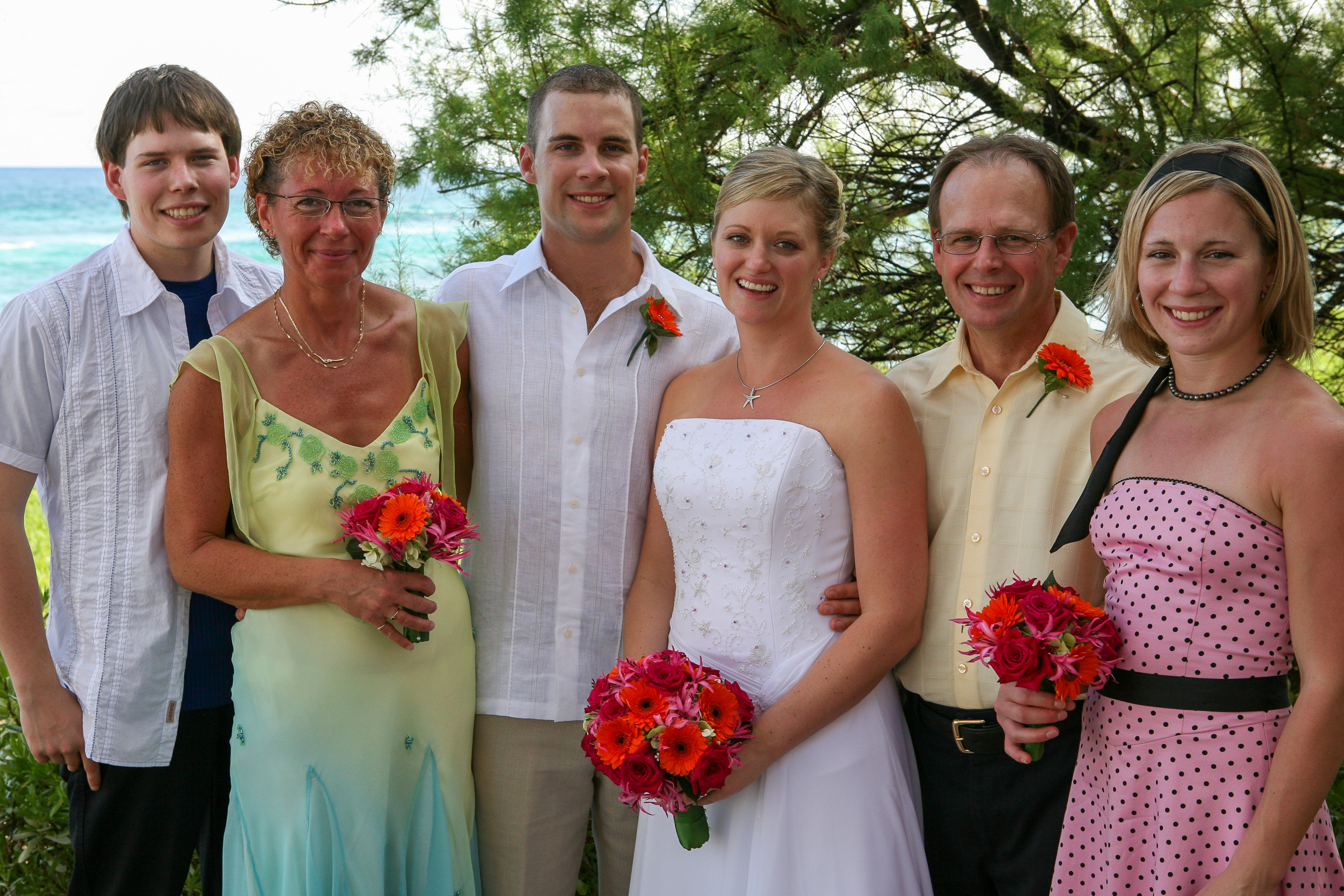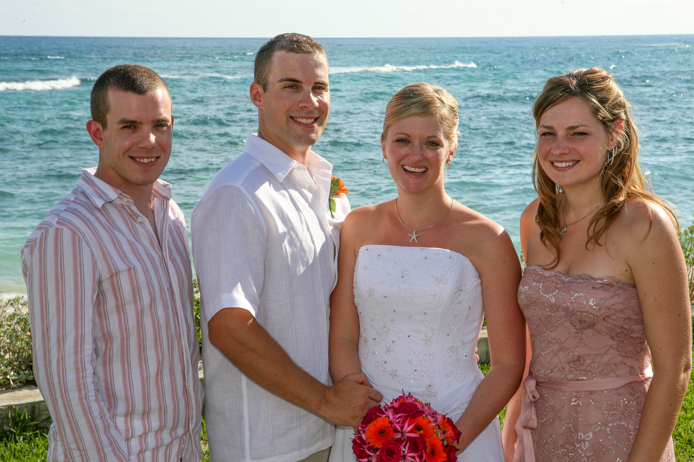 We were married in front of friends and family at Ariel Sands Resort. About 30 of our closest friends from Bermuda were there, plus our immediate families (parents, brothers & sisters) flew in along with Jenn’s friend Leanne and my friend Mark. The ceremony started around 5pm, and lasted a whole 20 minutes – nothing like getting to the point! After the ceremony, we were whisked away by our photographer, Sacha Blackburne, to take pictures on and around the beach. It was a lot of fun – she had us doing all sorts of things, including one of our favorite pictures of us rocking in a hammock. She had a lot of great ideas, it helped that she was very familiar with the location – we have all sorts of beautiful pictures to choose from, she captured everything: having fun on the beach, our new extended families, our friends, and of course the more tender and serious moments of the day. And don’t forget the cake!