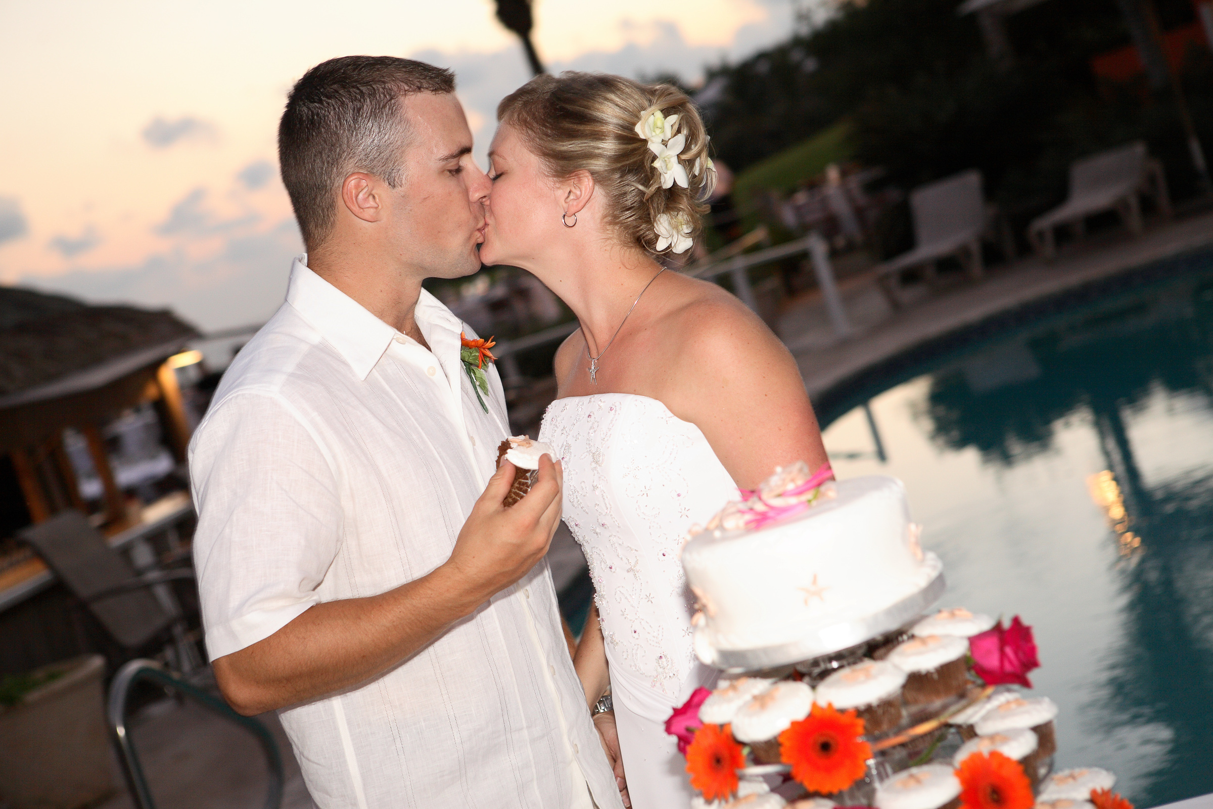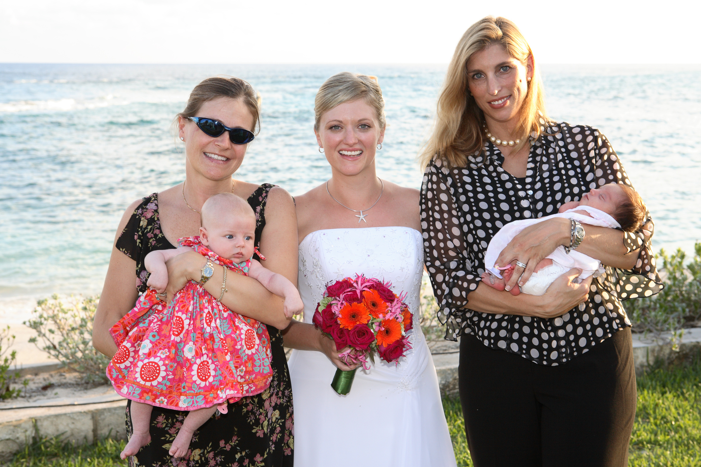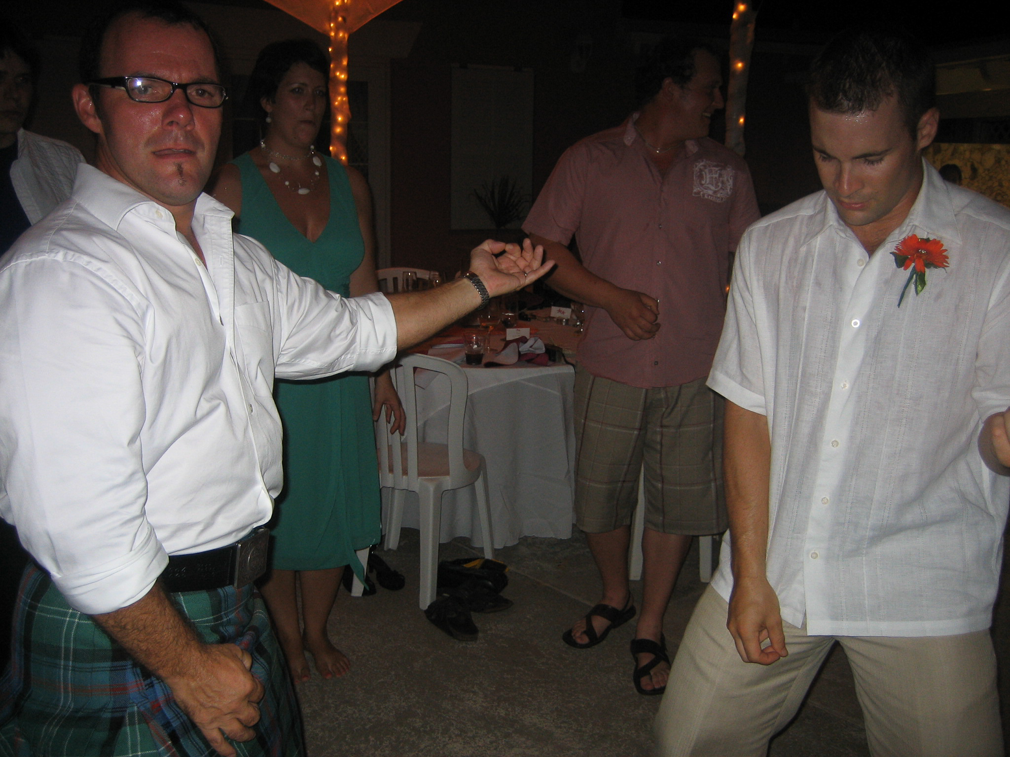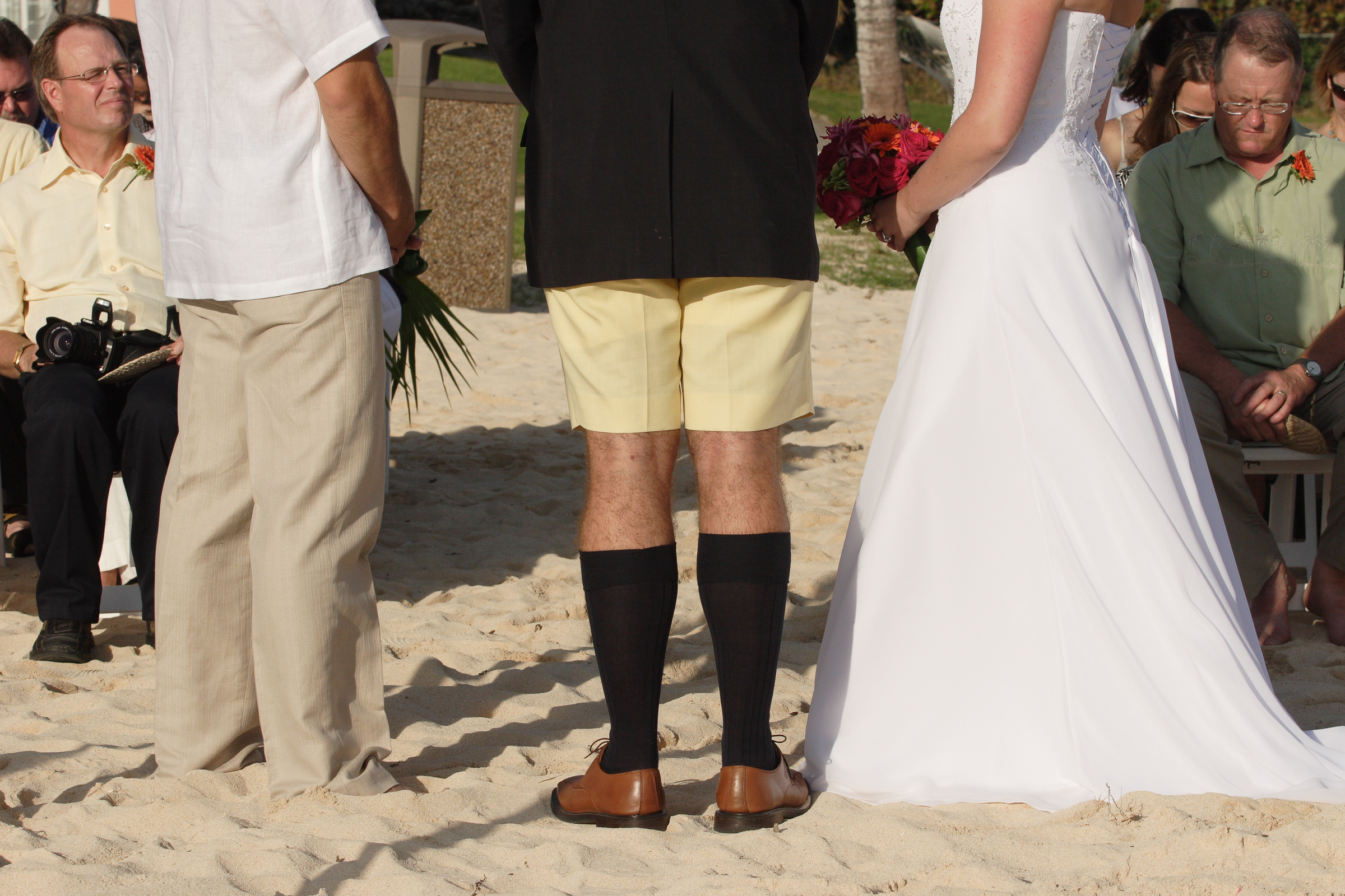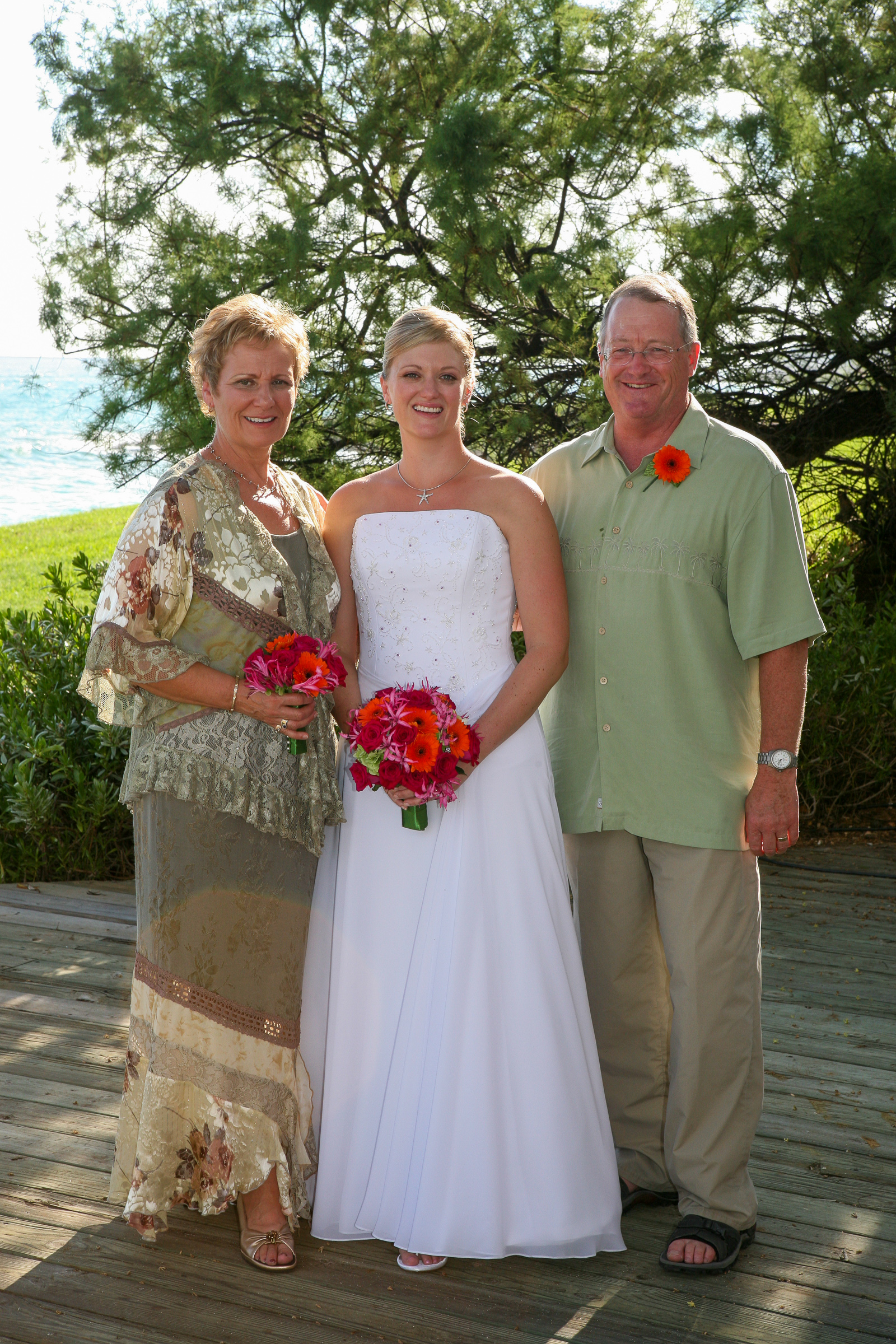 We were married in front of friends and family at Ariel Sands Resort. About 30 of our closest friends from Bermuda were there, plus our immediate families (parents, brothers & sisters) flew in along with Jenn’s friend Leanne and my friend Mark. The ceremony started around 5pm, and lasted a whole 20 minutes – nothing like getting to the point! After the ceremony, we were whisked away by our photographer, Sacha Blackburne, to take pictures on and around the beach. It was a lot of fun – she had us doing all sorts of things, including one of our favorite pictures of us rocking in a hammock. She had a lot of great ideas, it helped that she was very familiar with the location – we have all sorts of beautiful pictures to choose from, she captured everything: having fun on the beach, our new extended families, our friends, and of course the more tender and serious moments of the day. And don’t forget the cake!