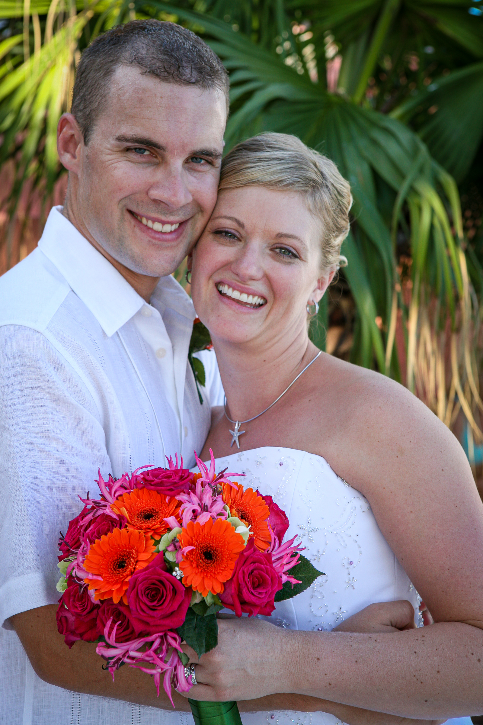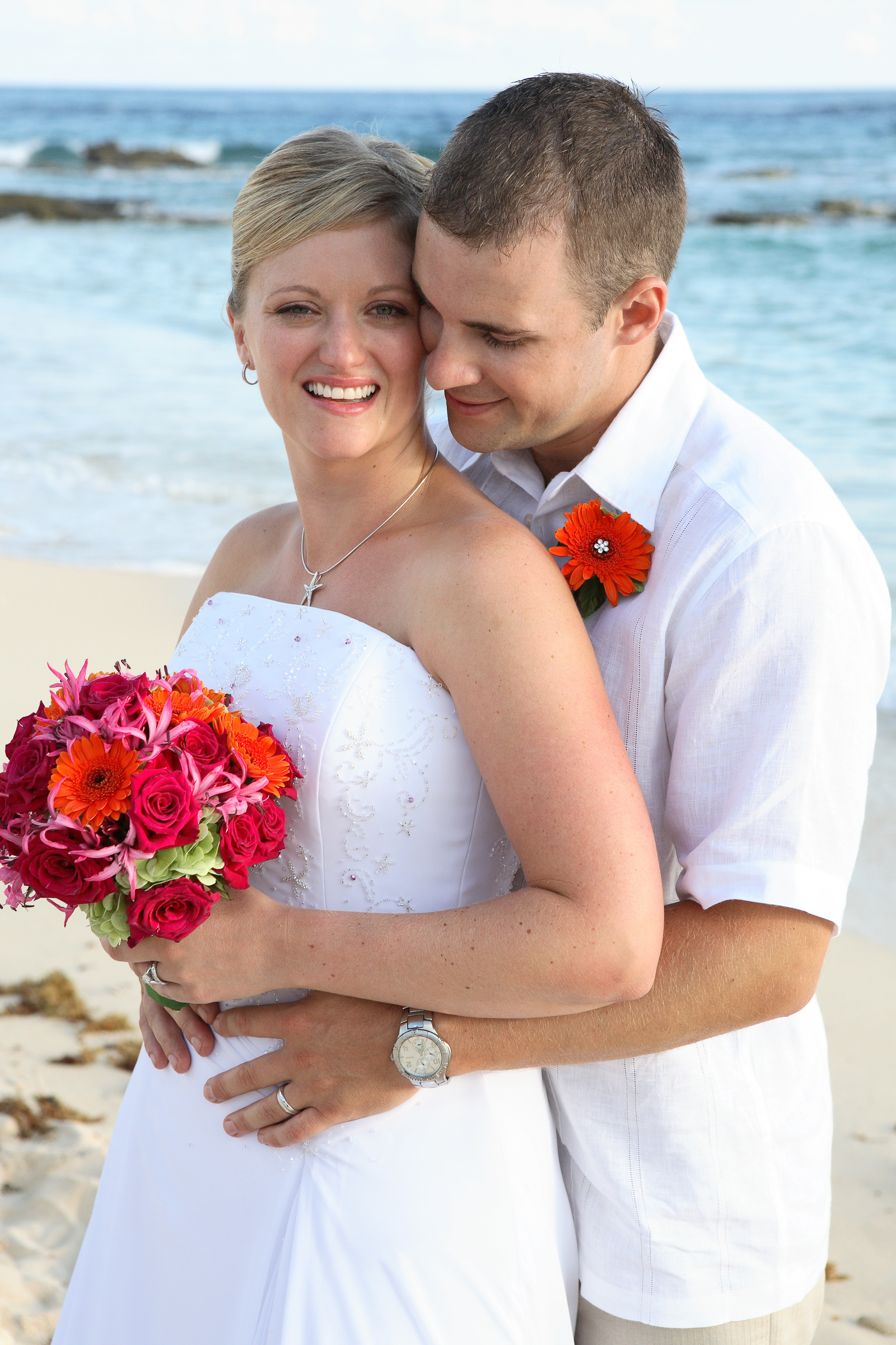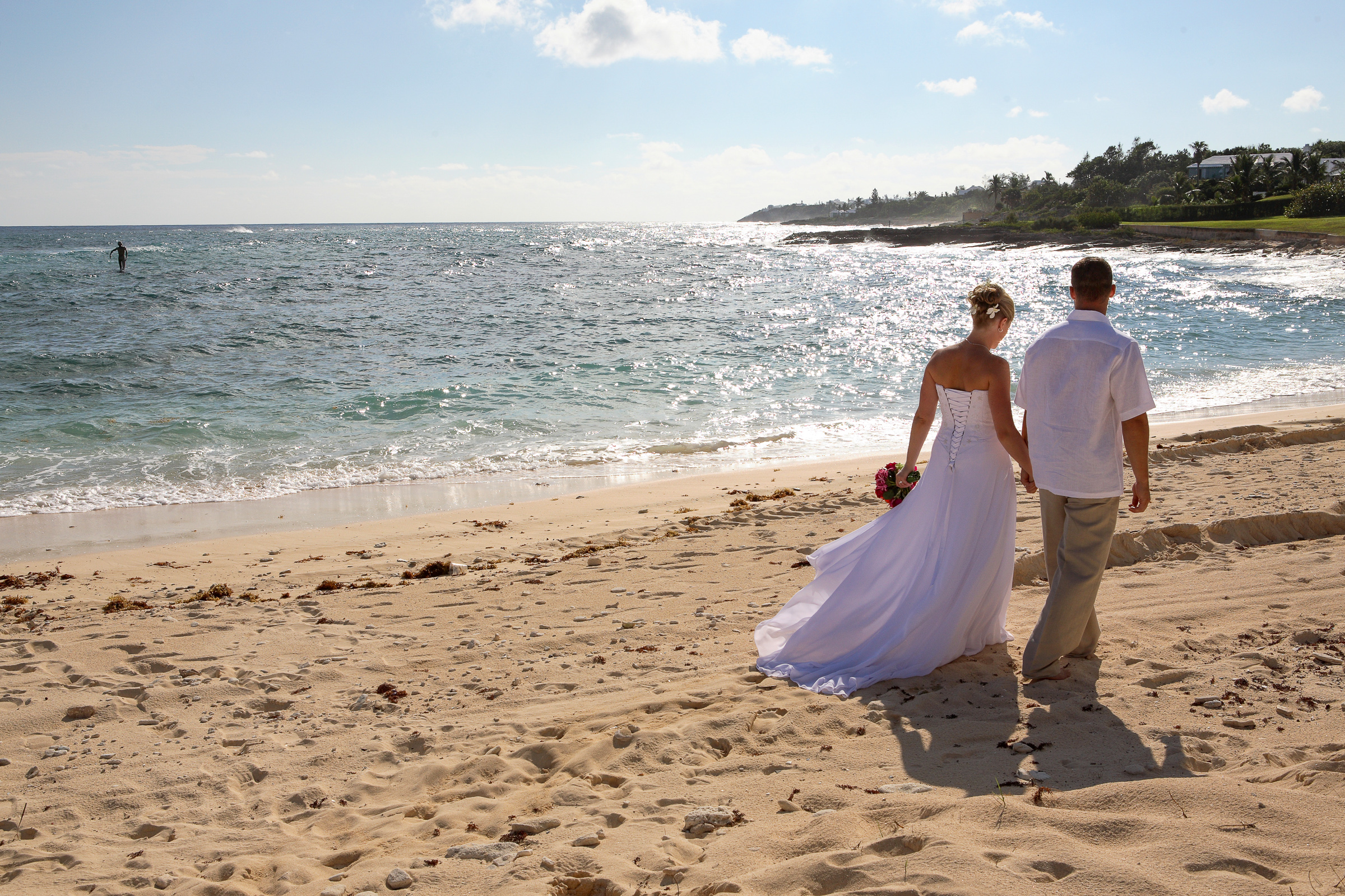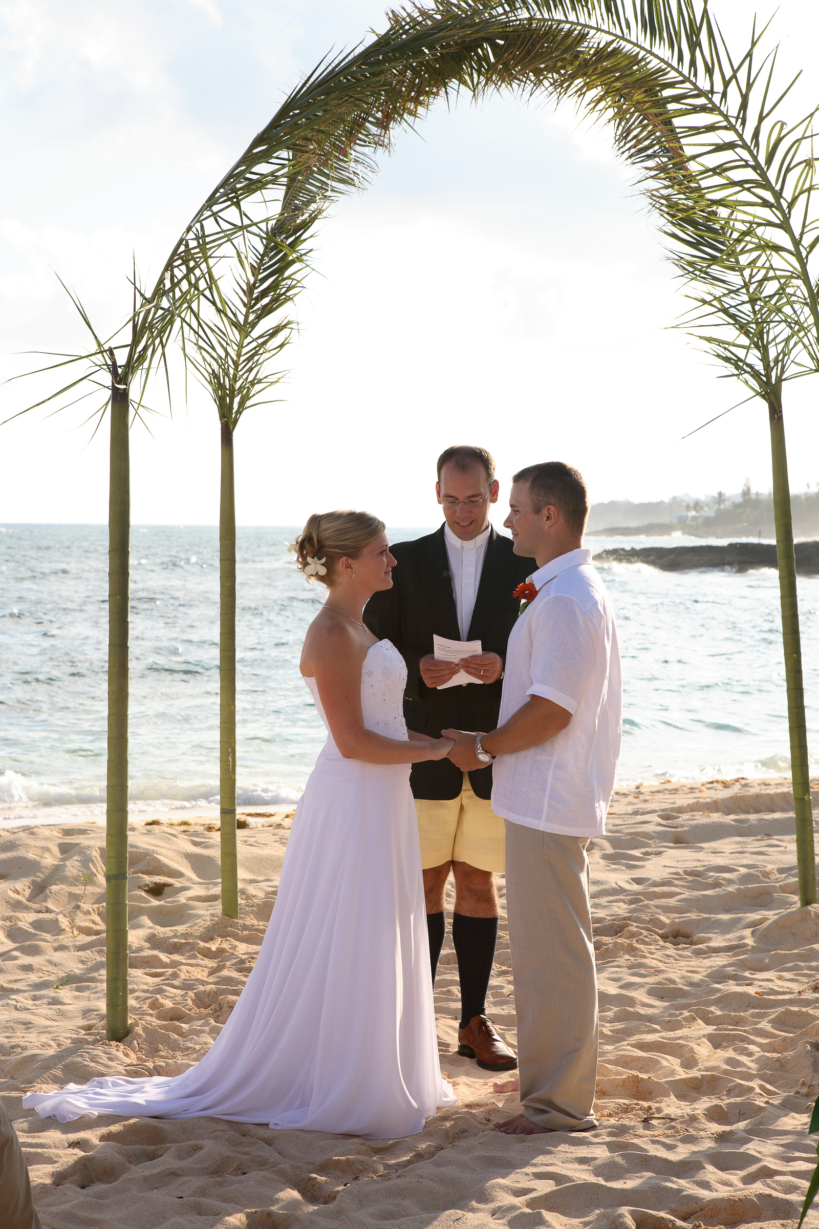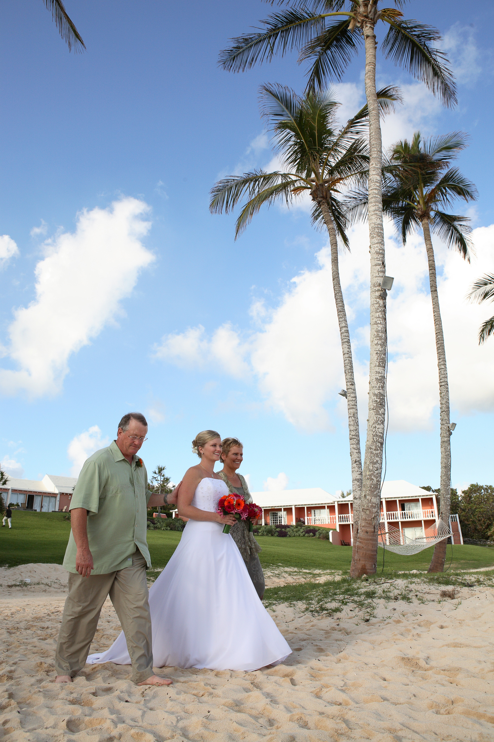 We were married in front of friends and family at Ariel Sands Resort. About 30 of our closest friends from Bermuda were there, plus our immediate families (parents, brothers & sisters) flew in along with Jenn’s friend Leanne and my friend Mark. The ceremony started around 5pm, and lasted a whole 20 minutes – nothing like getting to the point! After the ceremony, we were whisked away by our photographer, Sacha Blackburne, to take pictures on and around the beach. It was a lot of fun – she had us doing all sorts of things, including one of our favorite pictures of us rocking in a hammock. She had a lot of great ideas, it helped that she was very familiar with the location – we have all sorts of beautiful pictures to choose from, she captured everything: having fun on the beach, our new extended families, our friends, and of course the more tender and serious moments of the day. And don’t forget the cake!