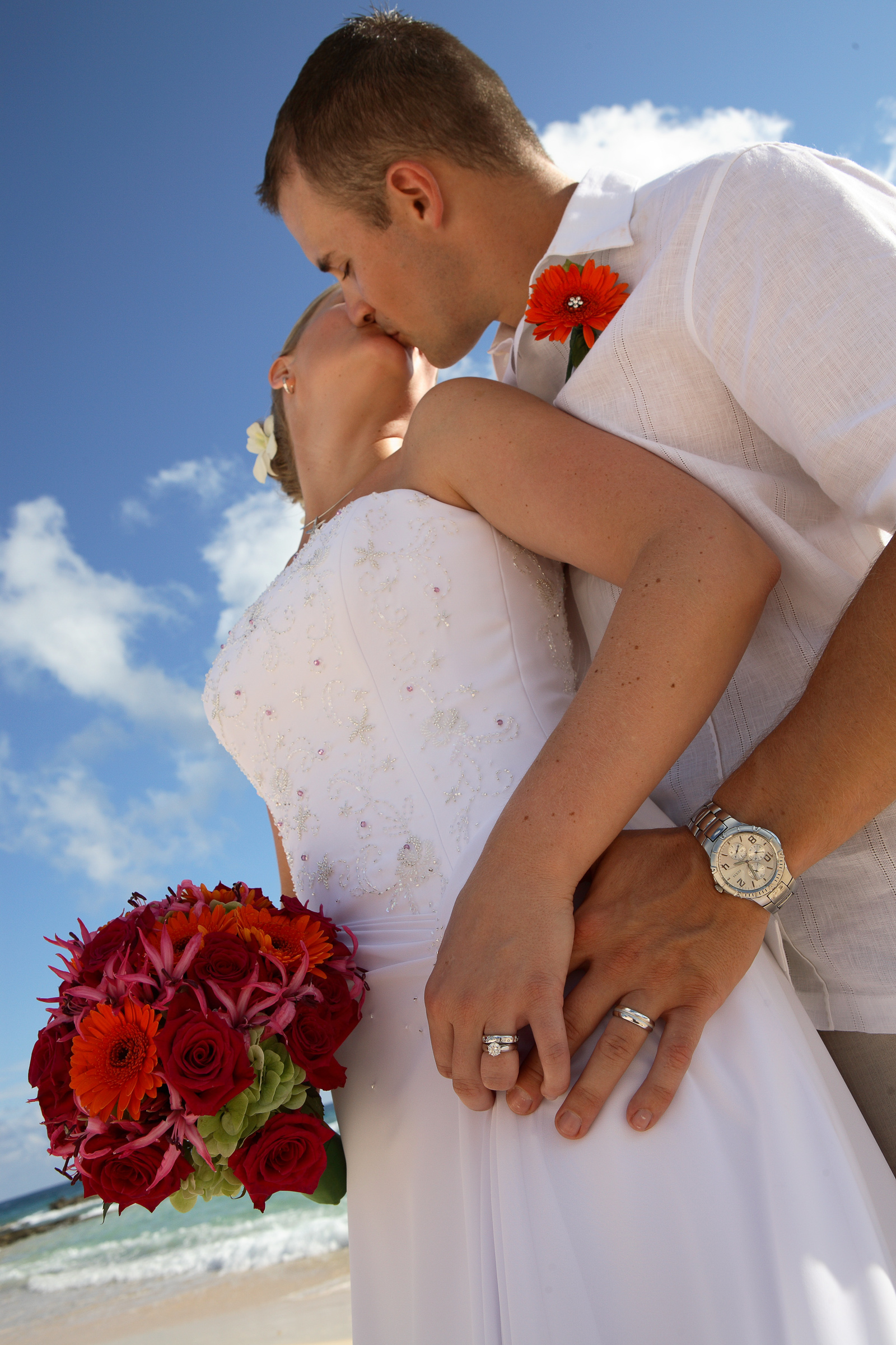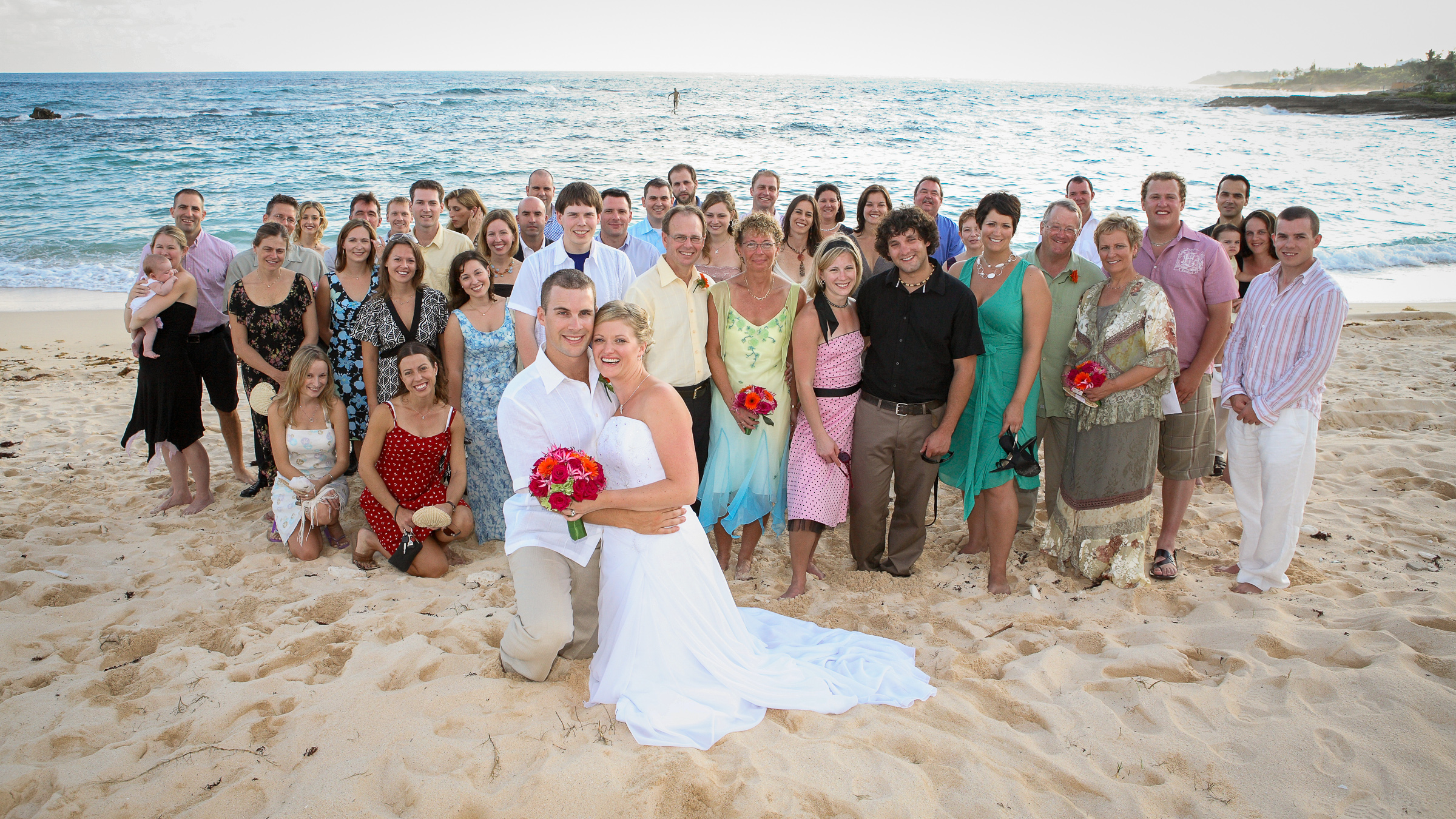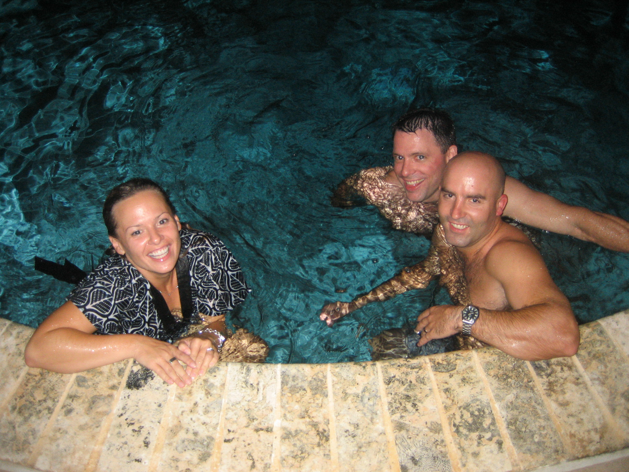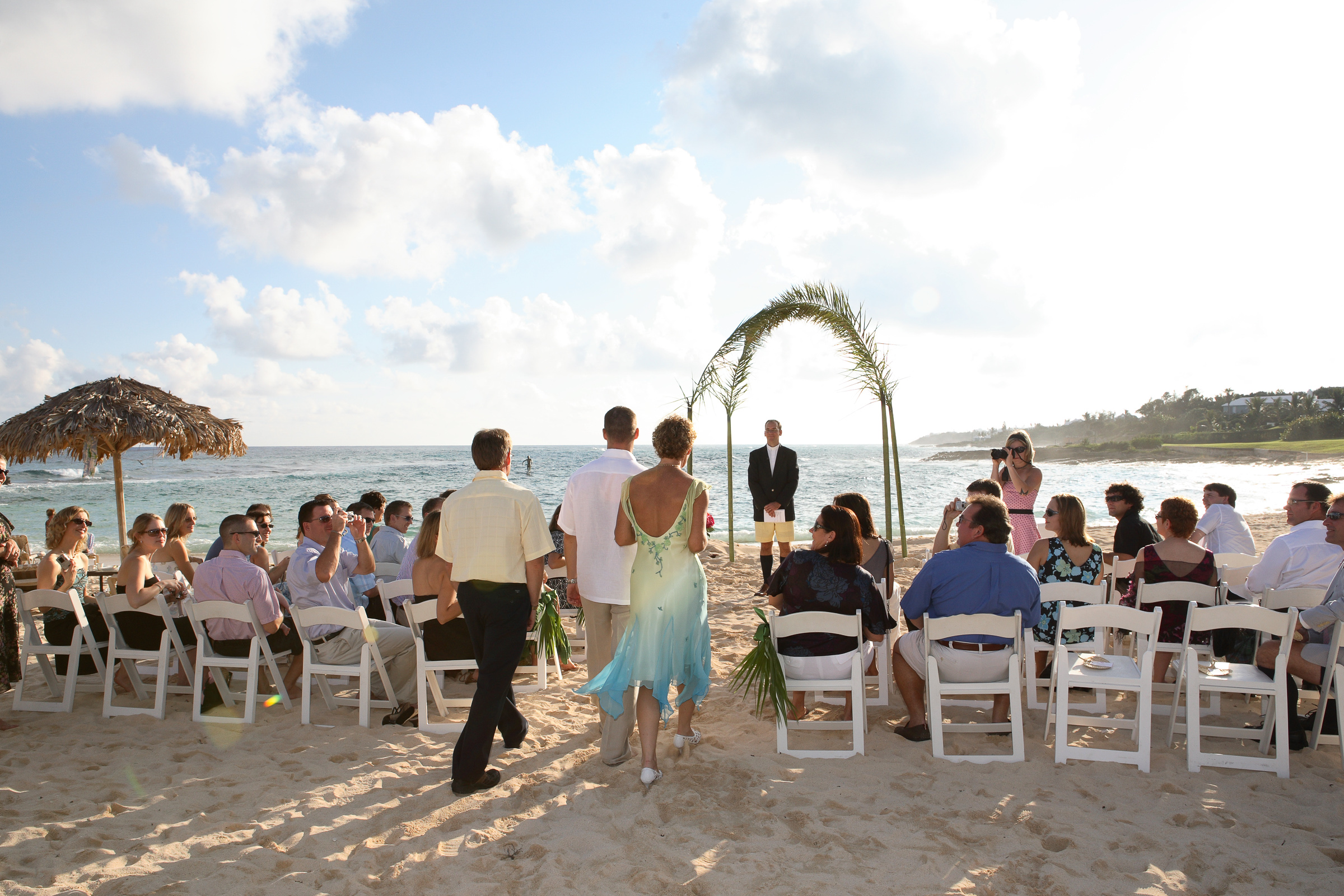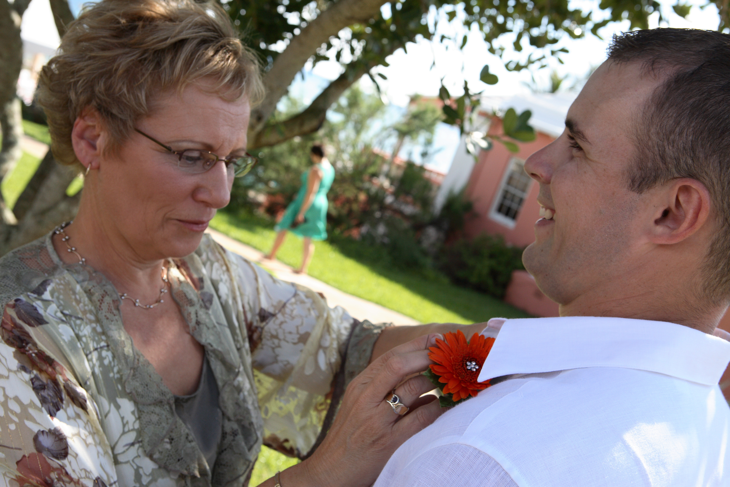 We were married in front of friends and family at Ariel Sands Resort. About 30 of our closest friends from Bermuda were there, plus our immediate families (parents, brothers & sisters) flew in along with Jenn’s friend Leanne and my friend Mark. The ceremony started around 5pm, and lasted a whole 20 minutes – nothing like getting to the point! After the ceremony, we were whisked away by our photographer, Sacha Blackburne, to take pictures on and around the beach. It was a lot of fun – she had us doing all sorts of things, including one of our favorite pictures of us rocking in a hammock. She had a lot of great ideas, it helped that she was very familiar with the location – we have all sorts of beautiful pictures to choose from, she captured everything: having fun on the beach, our new extended families, our friends, and of course the more tender and serious moments of the day. And don’t forget the cake!