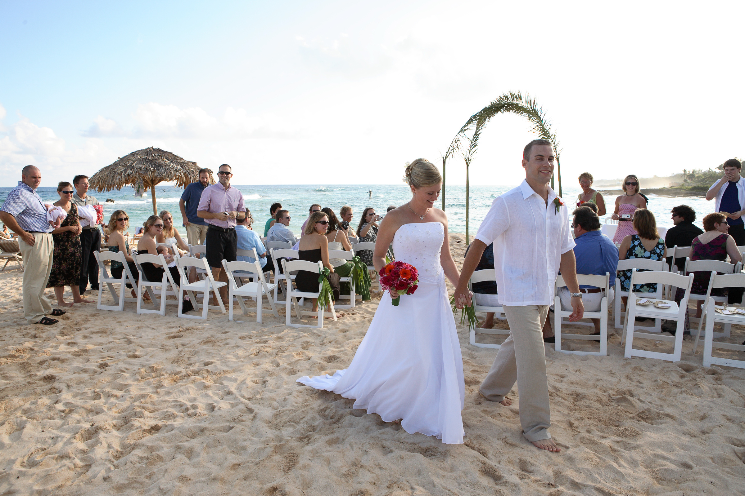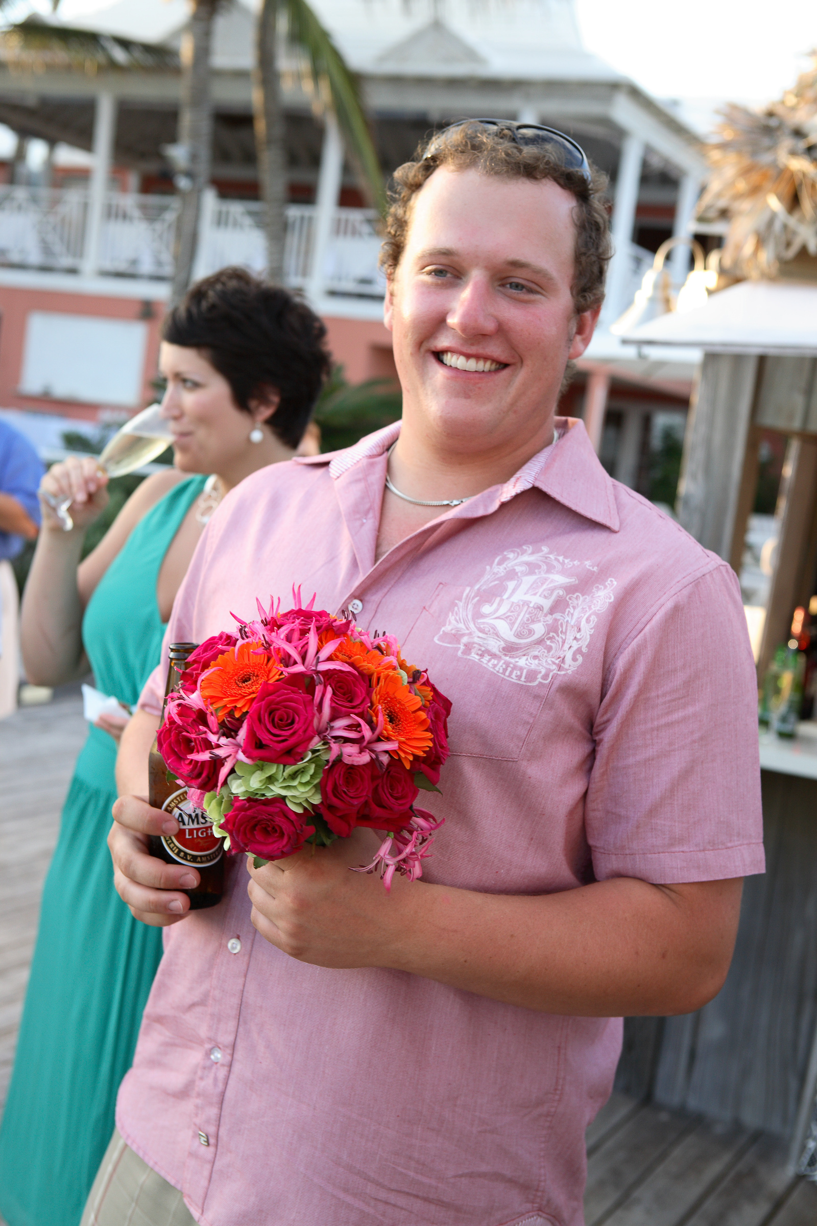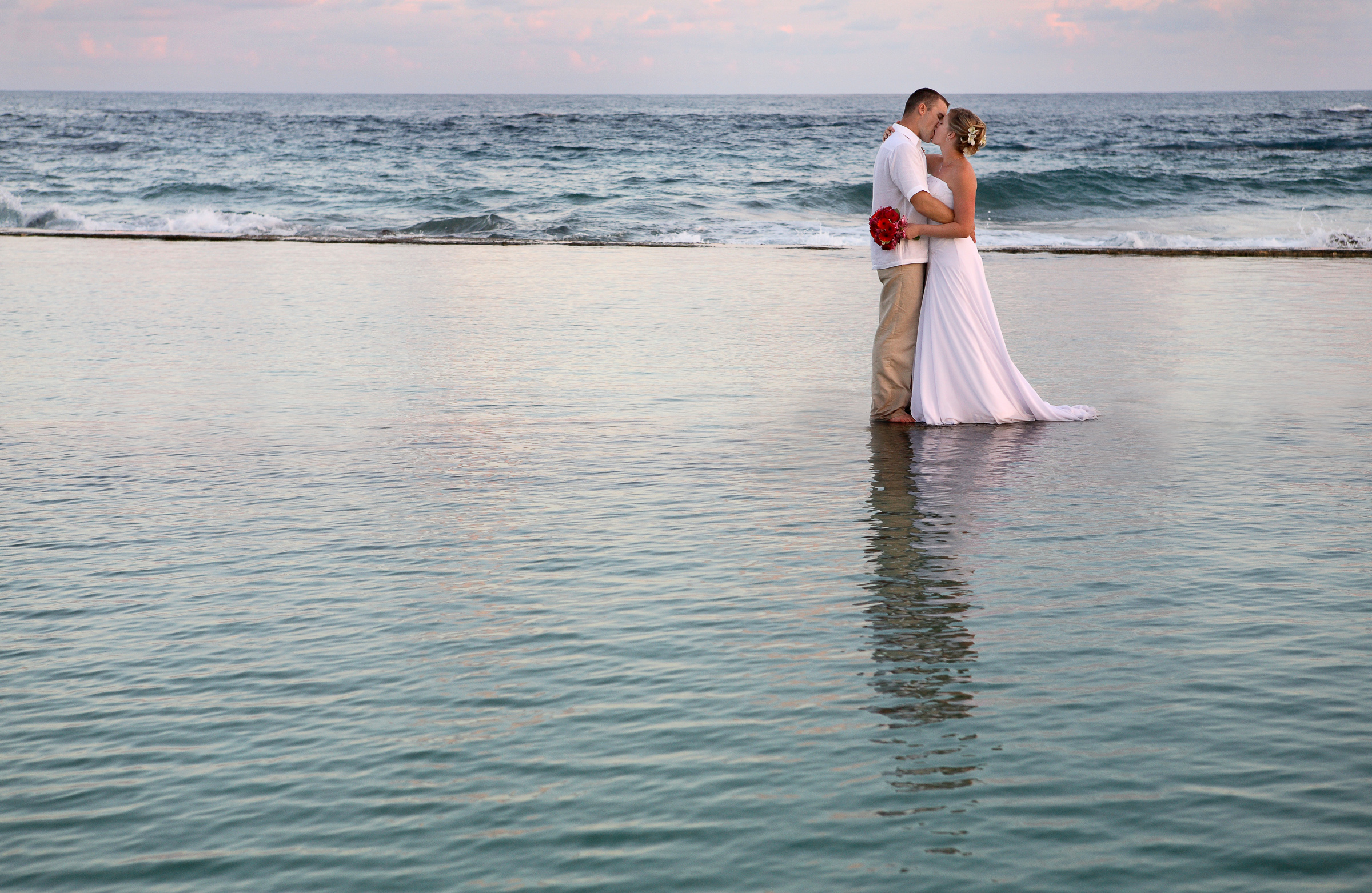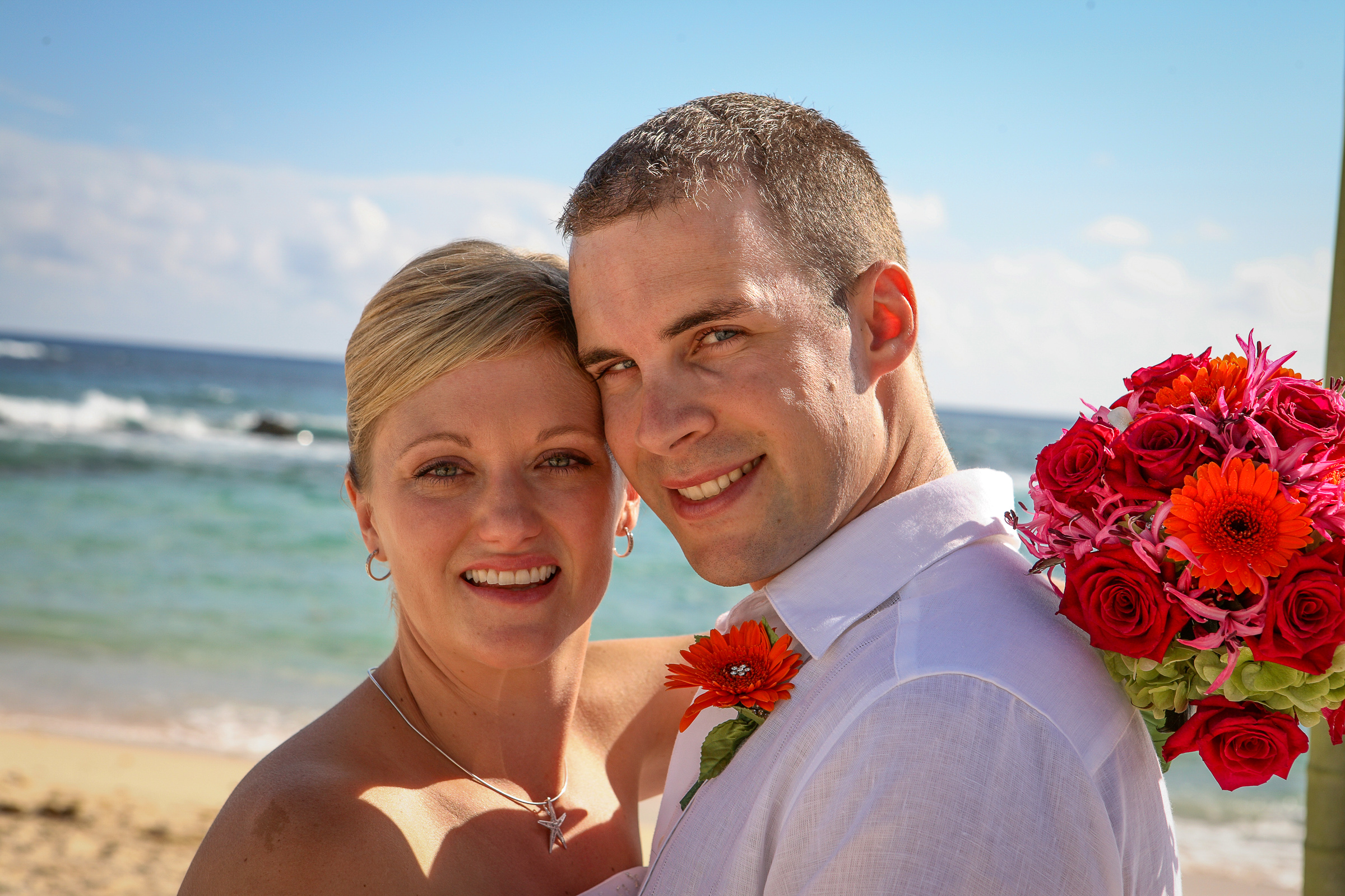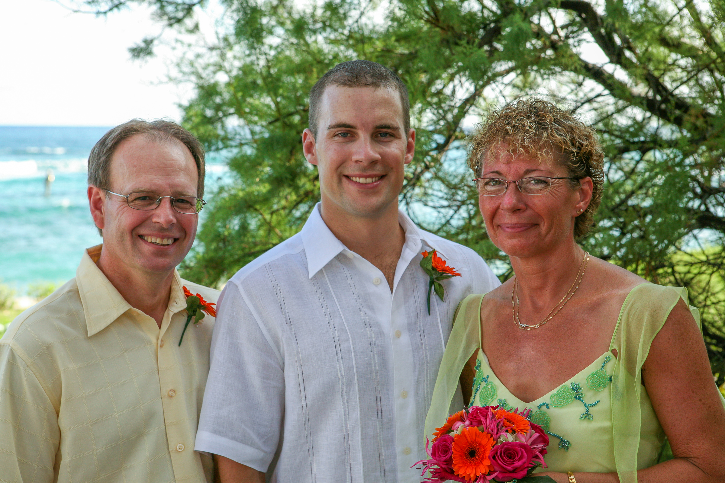 We were married in front of friends and family at Ariel Sands Resort. About 30 of our closest friends from Bermuda were there, plus our immediate families (parents, brothers & sisters) flew in along with Jenn’s friend Leanne and my friend Mark. The ceremony started around 5pm, and lasted a whole 20 minutes – nothing like getting to the point! After the ceremony, we were whisked away by our photographer, Sacha Blackburne, to take pictures on and around the beach. It was a lot of fun – she had us doing all sorts of things, including one of our favorite pictures of us rocking in a hammock. She had a lot of great ideas, it helped that she was very familiar with the location – we have all sorts of beautiful pictures to choose from, she captured everything: having fun on the beach, our new extended families, our friends, and of course the more tender and serious moments of the day. And don’t forget the cake!