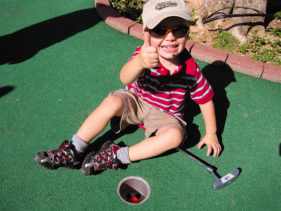 After hitting two full buckets (Josh usually goes through one bucket on his own), we went down to the putting course. Turns out this was a good day for Mom & Ryley to tag along…