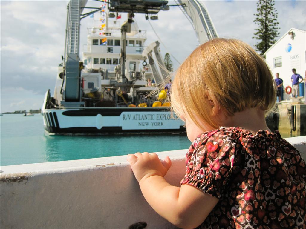 This past weekend we went on a new adventure here in Bermuda that we hadn’t done before (these opportunities don’t come along very often)! Jenn had heard that BIOS was having a day where you can go for a tour of their huge research boat, the Atlantic Explorer, plus they held many kids’ activities including a puppet show that Josh & Ryley seemed to enjoy.