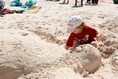 Helping a beach neighbor with their sand sculpture of a turtle – she’s so helpful!