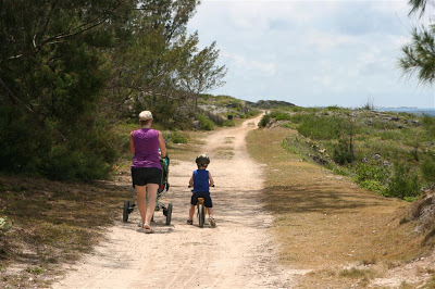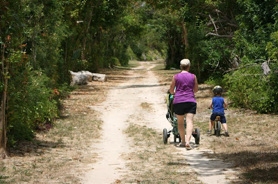 Josh and Daddy taking a seperate trail on the way back, just to check it out. Some nice, forested off-shoots from the main trail also were discovered along the way.