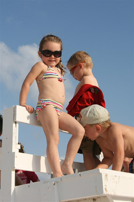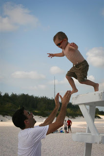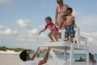 The Cassidys, who had moved to Toronto last year, were back for a little fun in the Bermuda sun! We were invited to the beach to see them and the rest of our ‘usual gang’ on a Friday evening. Eveyone had some take-out pizza for dinner and the kids had a blast running in and out of the waves, and later we had some fun playing on an unattended lifeguard chair. It was great to see the Cassidy’s again, we hope to see them again soon (we all miss them)!