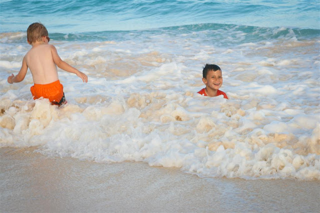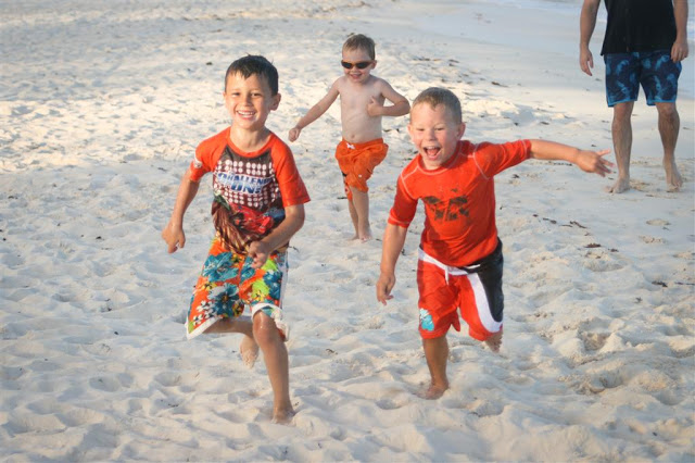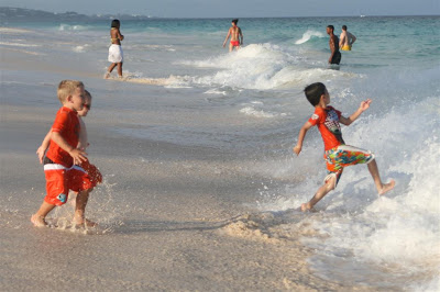 Well, it’s that time of year again, we’re just starting our “Cup Match” holiday – a four day weekend. We kicked it off with some beach time after work tonight with the Cundliffes (Chad’s mom was down as well) and Fash came by with George (who was down for the week for a summer visit)! I believe it was Iris’ idea – a good one – the kids had a great time, it was a good lead-in to the “Fashfest / Georgefest” party on Friday.