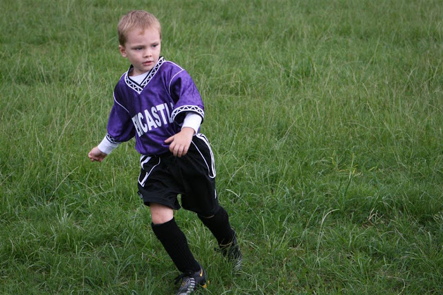 Josh’s team this year is ‘Newcastle’, he chose the number 7 (as this is his favorite number, according to him). Being inexperienced, he often is at the back of the pack that is chasing after the ball, or just wandering around the field nowhere near the play – but he gets the odd kick in here and there, hopefully it will be enough to coax him to get a little more ‘into’ it… no rush, in good time.