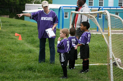 Jenn volunteered to be a coach as well for Josh’s team – she used to coach little kids back in Edmonton, she thought she’d give it a go again now that Josh is playing. So far, so good! They don’t really keep score in an official sense – so we can’t report on what her win / loss ratio is, but I think she’s on the winning side so far! ;0)