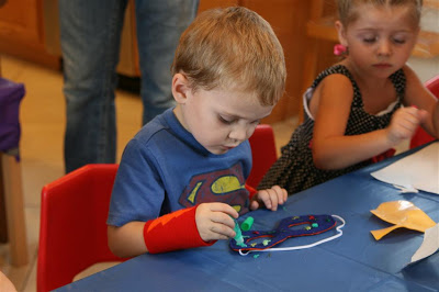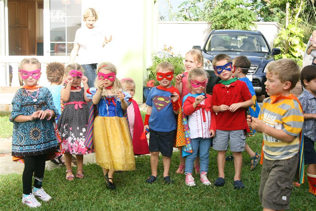 Jenn of course had organized some games and crafts for the kids, including superhero mask-decorating and a scavenger hunt. Luckily the weather turned for the better about mid-way through the party and we were able to head outside, which worked out much better for the scavenger hunt.
