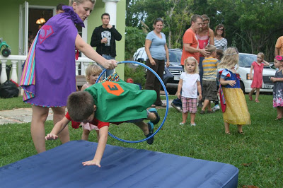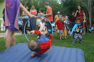 I think one of the favorite activities for a good portion of the kids was the ‘superhero jump’, which was basically a hula hoop held out in front of an air mattress – I got a bunch of photos of the kids diving through the hoop and gracefully landing on the mattress beyond (or not-so-gracefully in some cases!).