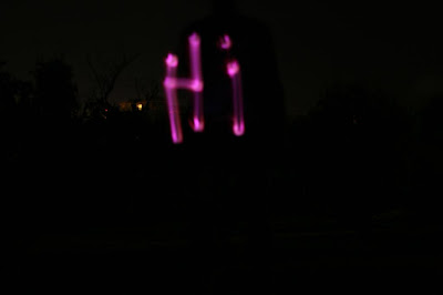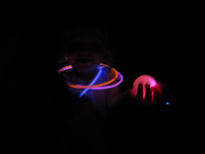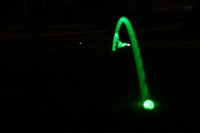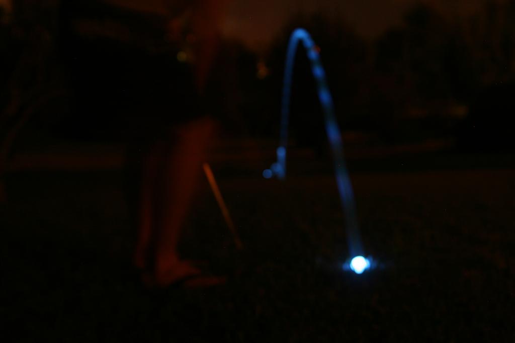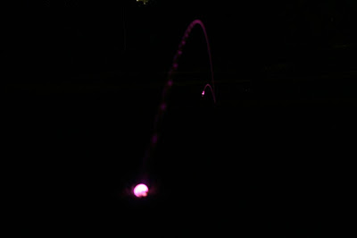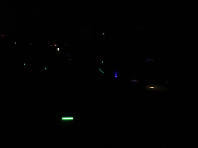 This (below) was pretty much all you could see out there on this moonless night – but we were all equipped with flashlights and lots of glowing and flashing thingys so it was all good. The golf balls were really cool – apparently in years past you had to get a little glow stick and put it inside the ball, but now they have electronic / LED balls that light up and stay lit for up to 10 minutes when you drop them or hit them… very cool indeed.
