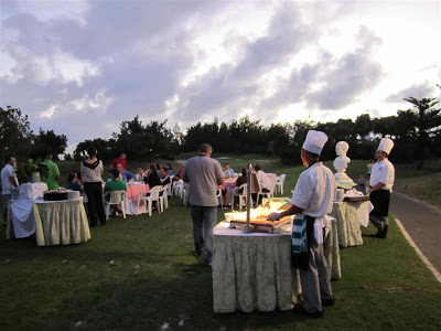 The social committee at Jenn’s office (headed up by none other than Jenn) organized a night golf mini-tournament at the Southampton Princess golf course this past Friday night. Neither of us have ever been night golfing, I know I for one was looking forward to it! There was a little dinner on the 10th tee box beforehand while we were waiting for it to get dark.