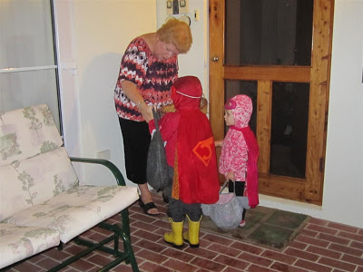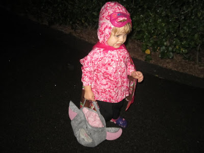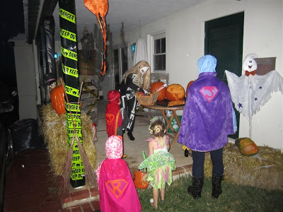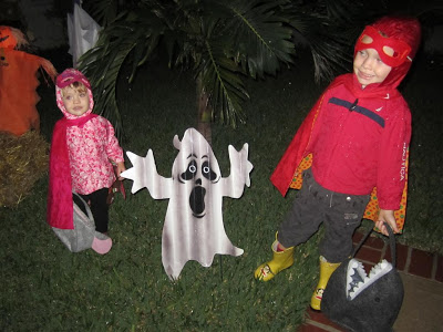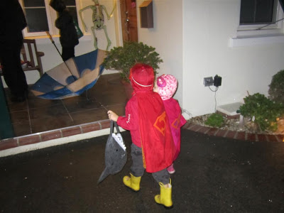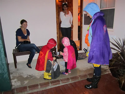 Unfortunately it was a rainy night – but surprisingly they weren’t phased by the rain as we made the rounds of the Whale Watch neighborhood (where the Cassidy’s used to be). Perhaps it was the promise of a big bag of candy at the end…?