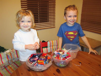 Here’s our buddy Ethan, dressed up as a member of Lightning McQueen’s pit crew… then the ‘money shot’ of our kids with their haul for the night.