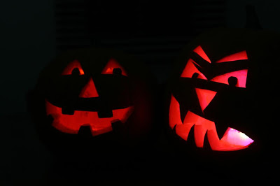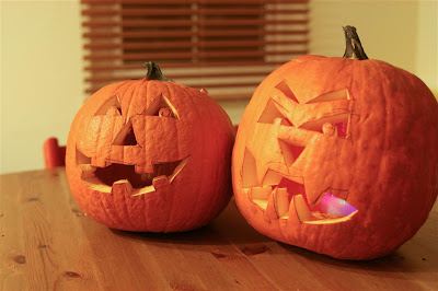 And of course, Daddy made a few jack-o-lanterns (Josh-o-lanterns?) with the pumpkins we ‘picked’ from the pumpkin patch last weekend. Have to admit not a lot of time was spent on the design, but I think they were passable.