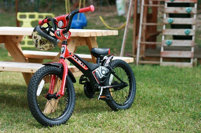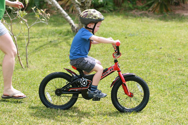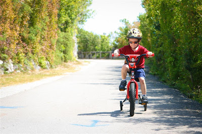 I think one of the highlights of the weekend was Josh getting his new bike! He has been happily bombing around on his little balance bike until now, but he’s shown some interest in using a bike with pedals as of late so we did a little research in town and found one just right for him! (He wanted a red one, that was pretty much his only criteria.) I had Friday off, so I brought it home from the office on Thursday and we went out to the Railway trail to test it out with Friday. We kept the training wheels on for the first few days…