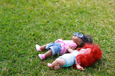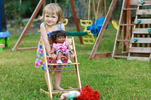 Ryley had a cool little replica of their high chairs made by Grandma & Grandpa Boys for her dolly – so while I was taking a few photos of Josh’s bike she wanted me to take some of her and her dolls as well. I think I caught the dolls suntanning!