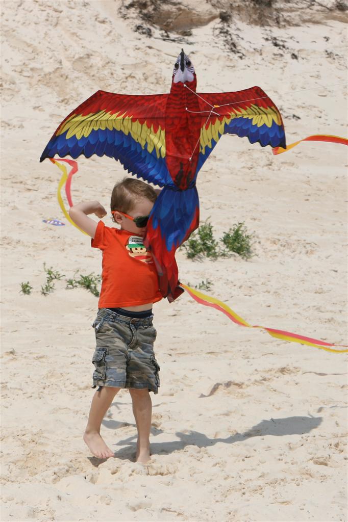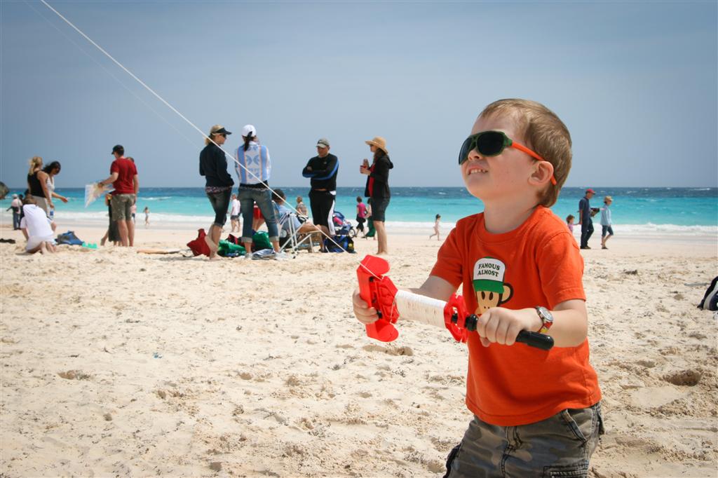 The kids were excited to hit the beach, Josh even carried some of the gear down for us (first time ever)! Ryley had got a Barbie kite from a friend’s birthday party not long before Easter and Jenn got Josh a nice big Parrot kite this year.