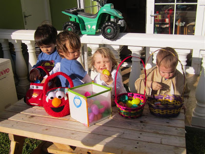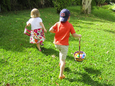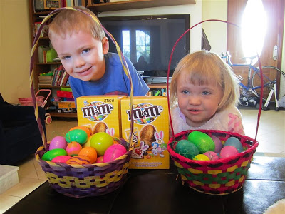 We had Fran and her Dad (with Sam & Jasper, of course) over for dinner that evening; another egg hunt or two were held out in the yard. Some spoiled kids here!