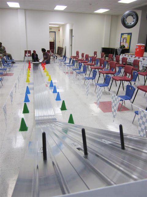 I’m not sure where the BBA got the track from, but it was an ‘official’ track, four lanes of nice and smooth aluminum with a proper spring-loaded starting block at the top. Rumor has it next year they are going to up it to eight lanes with a proper electronic timing system – Josh may be invited back as a BBA alumni, but if not, Ryley will still be there – we’ll get ’em next year!