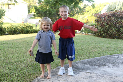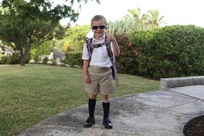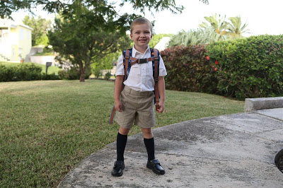 Hard to believe that our little man is already big enough to start going to ‘big school’ (which back in Canada would be the equivalent of Kindergarden)! He’d been excited to start at Warwick Academy all summer… then there ended up being one extra day of waiting due to a big storm that blew through the weekend before what was supposed to be the first official day. So yesterday, he finally got to don the school uniform (yes, those are Bermuda socks he’s sporting with some fancy shoes) and off to school he went!