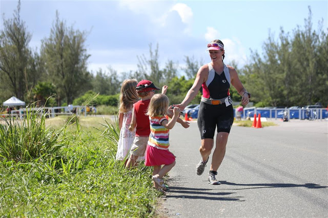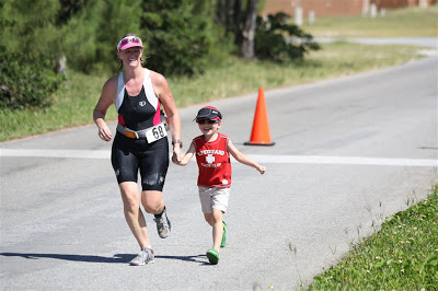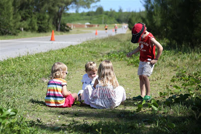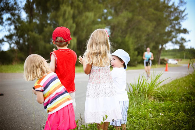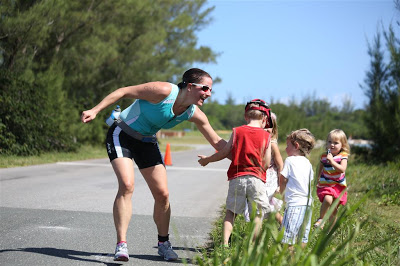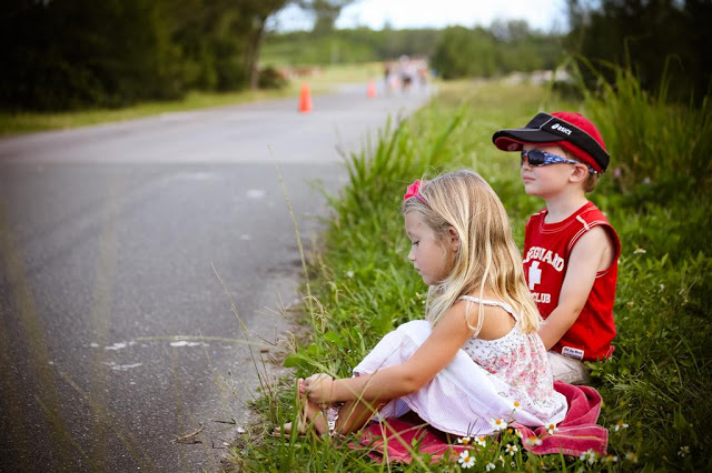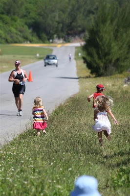 The kids wanted to give high-fives on every lap, plus they would run out to greet both Jenn and Alex as they approached our roadside hangout. Josh managed to run with Jenn for a few short bursts!