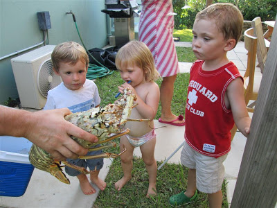 Big Dave brought over a lobster to scare the kids with… and to eat. Destiny and I managed to cook it up just right for all to enjoy along with Jenn’s great appetizers and my burgers!