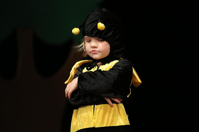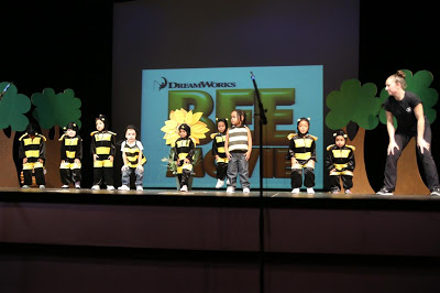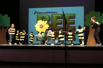 This show’s theme was “Once Upon a Time at the BBA”, which was basically a Disney movie musical. Ryley’s teachers are very creative and always find fun ways to incorporate popular music and great costumes into their shows, this one was no exception. Ryley’s first number (out of only two, unfortunately!) was based on the “Bee Movie”, she did some cool hip-hop groovin’ to some Black Eyed Peas (“Imma Be” = sounds like “I’m a Bee”, get it?).