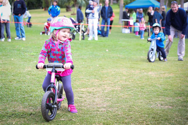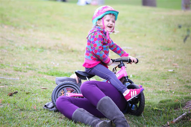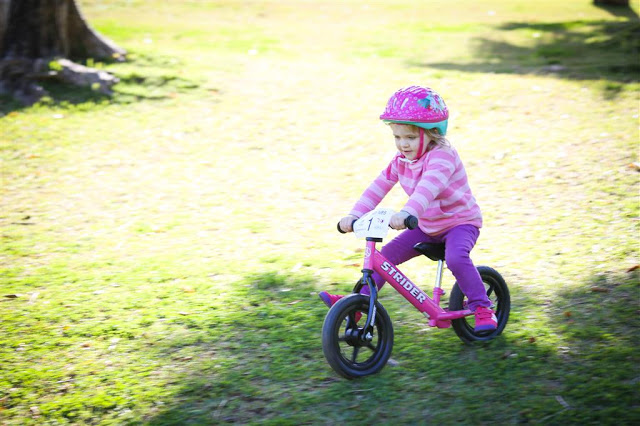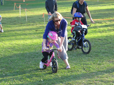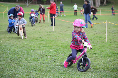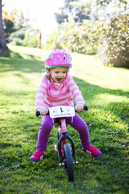Ryley’s really trying to ride with her feet off the ground (sort of essential for proper bike riding) – which she got a handle on after some post-race practicing!