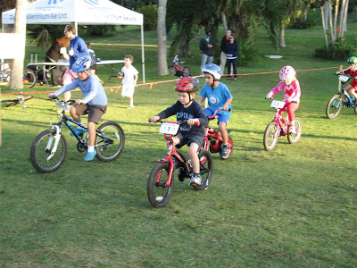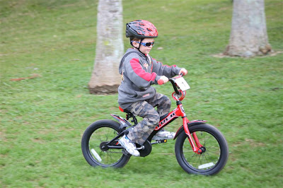 For a few months in the winter, there are kids’ bike races held most Saturday afternoons at the Botanical Gardens not far from our place. Josh was keen on them last year and continues to be this year as well, especially with his bigger bike!