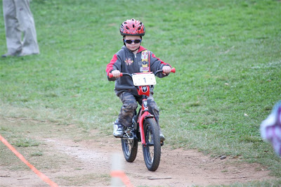 Josh, meanwhile would have fun between races zooming down a big hill and taking bumps, etc. He is getting quite confident on his bike these days!
