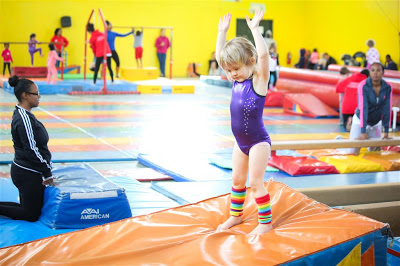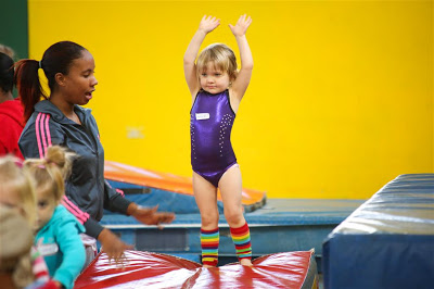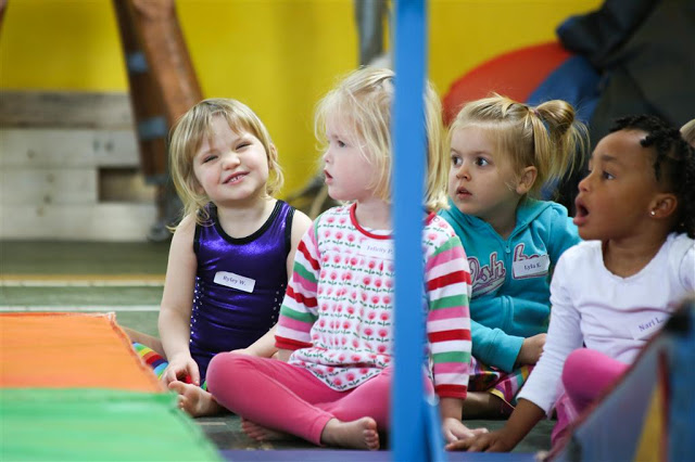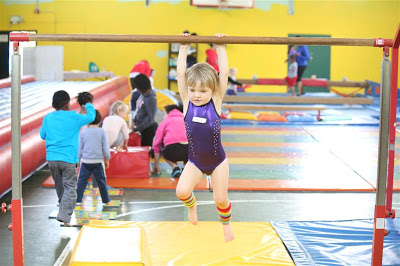 It’s a pretty entertaining hour for her as far as I can tell; she really likes it (she still gets excited and squeals “nastics!” when we mention that it’s gymnastics day)!
