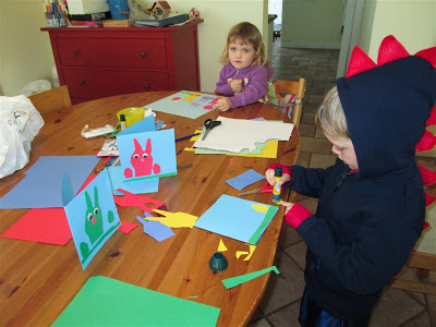 As Josh says, “Hoppy” Easter, everyone! As per usual, there were lots of things happening around here for Easter besides having hot cross buns and codfish cakes for multiple meals a day. For example, Josh’s class at school was having a little Easter contest, the kids could make cards or a poster or a flower arrangement among other things. Josh decided to make some Easter cards, and did a great job, he got a 3rd place prize (which was chocolate, which he shared)! Ryley of course made her own poster with a similar theme…