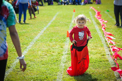 Roo’s not the strongest jumper, but she was so cute doing her best in the sack race! She got some help at the end.