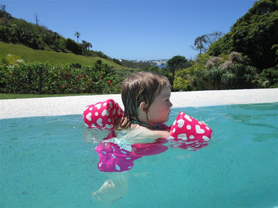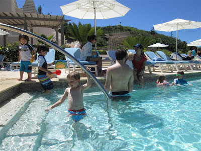 Enjoying the heated pool up at the hotel…