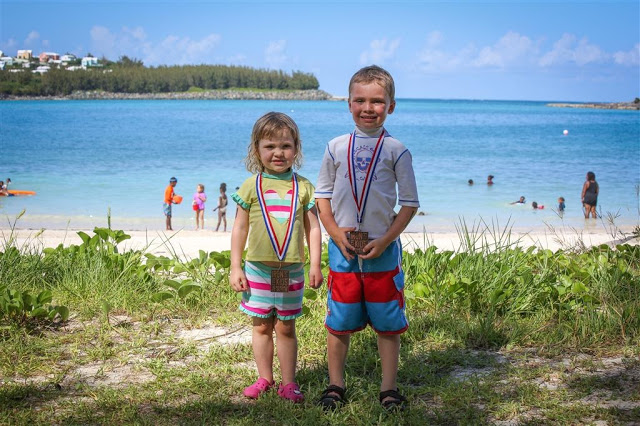 The race took about 5 minutes (don’t pay attention to the clock in the pictures above), but that wasn’t nearly enough kids’ action for us! Jenn, Alex, and another triathlon partner-in-crime Kandis Matthews were going to do a mini-triathlon the following Thursday (today) out at Clearwater again, so we planned to take the kids out and set up another race just for the kids afterward.