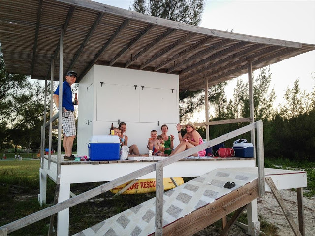Luckily there is a Pizza House just up the road – we commandeered the lifeguard stand on the beach to eat and have some refreshments after everyone’s exercise!