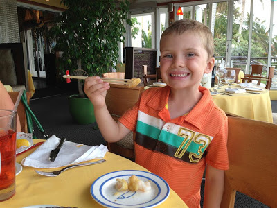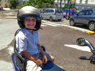 He only had a half day, so I took the afternoon off work and we set off for a fun afternoon to celebrate the beginning of summer holidays! Here he is on the bike on the way to town where we went to the Pickled Onion for lunch.