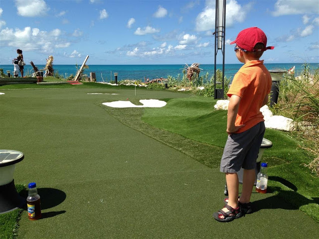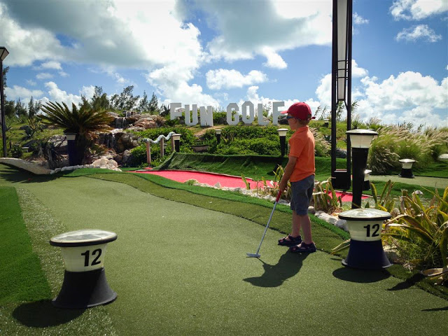 He likes coming to my office (I let him play video games on the computer) so we went there for a little bit after lunch, then I suggested that we catch a ferry to Dockyard for some mini-golf at the new facility out there, much to his approval.