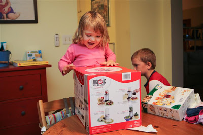 Ryley is a bit of a smoothie nut, and as our Magic Bullet was on it’s last legs, we got her a new one with a bunch of new cups with handles and other fun lids and accessories. She loved it, and promptly helped Jenn make her favorite green smoothie for breakfast (Josh wanted one, too, which was unusual…)!