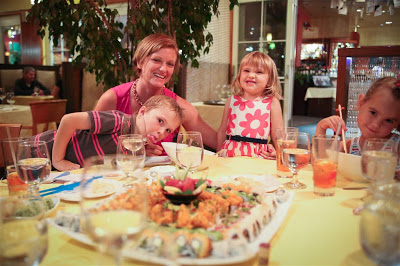 And finally, to top off the day we grabbed some more friends and went out for a nice sushi dinner (Ryley’s request) at the Harbourfront. I’m pretty sure I hadn’t seen a plate of sushi that big, ever. ;0) Ryley had a great day on her birthday, but her party was yet to come…