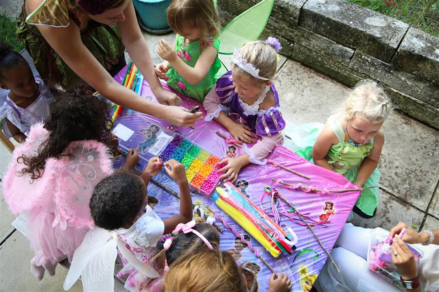 Jenn had a few fun crafts sorted out for the girls to do, first the girls did some coloring while waiting for everyone to arrive, then moved on to making fairy wands out of sticks and some fun colored beads, ribbon, and pipe cleaners! They had lots of fun making their wands.