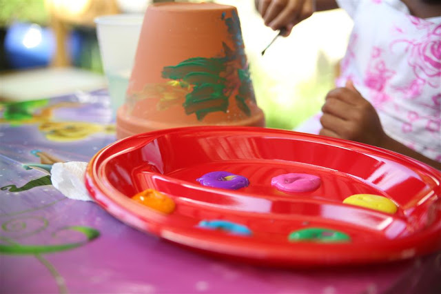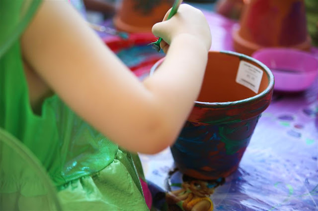 Next, Jenn had got some terra-cotta pots for the kids to paint and decorate, then work some fairy magic…