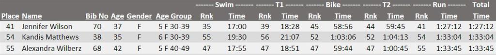 The girls all had a good showing here, with plenty of smiles after the race – always a good sign! (Kandis’ husband Joel did it as well.) Overall results below… Jenn, Kandis, and Alex were 5th, 6th, and 5th respectively in their age groups, well done!