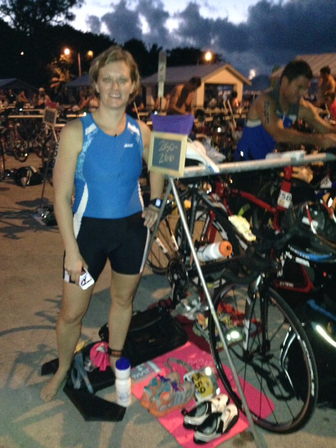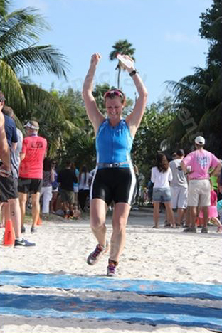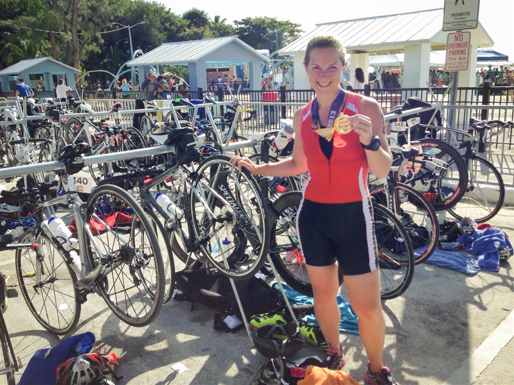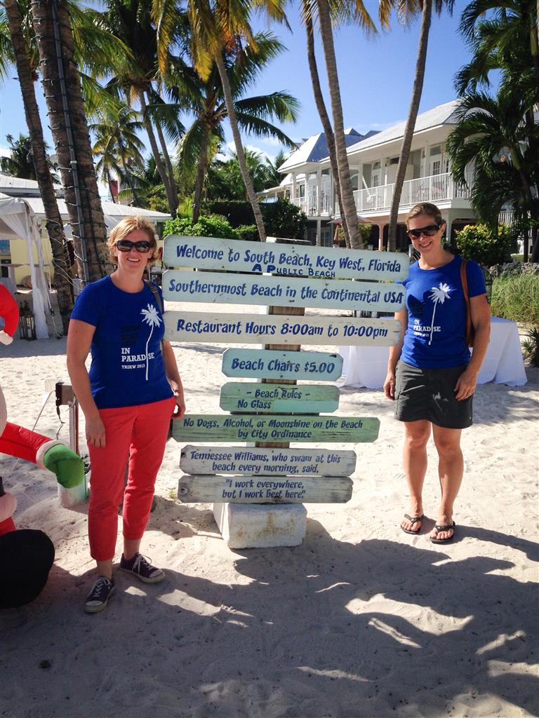 A few months’ worth of training later, in early December, Jenn and Kandis took a trip over to Florida for an Olympic-distance event in Key West. Yes, outfits were coordinated beforehand… as Alex wasn’t able to make it they wore her favorite colour in her honour! ;0)