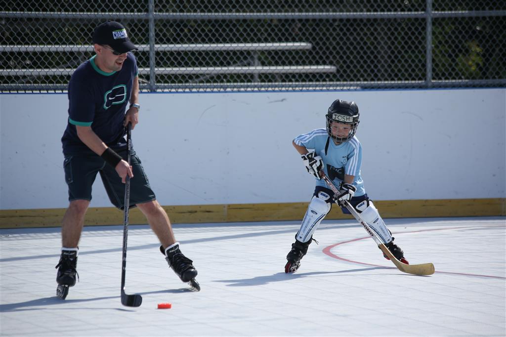 I don’t think he likes hockey quite as much as soccer, likely due to them having to actually learn to skate and practice things like crossovers (oh no!!). But his skating and other hockey skills are coming along, I’m sure next year he’ll move up to the next level where they get to play some actual games. He likes to hang back in the play a bit when they scrimmage and he’s getting quite a shot… he loves the slap shot (!) – I think with a little improvement in his technique he can really develop a howitzer! At any rate it looks like I’ve got a stay-at-home ‘D’ man for now… ;0)
