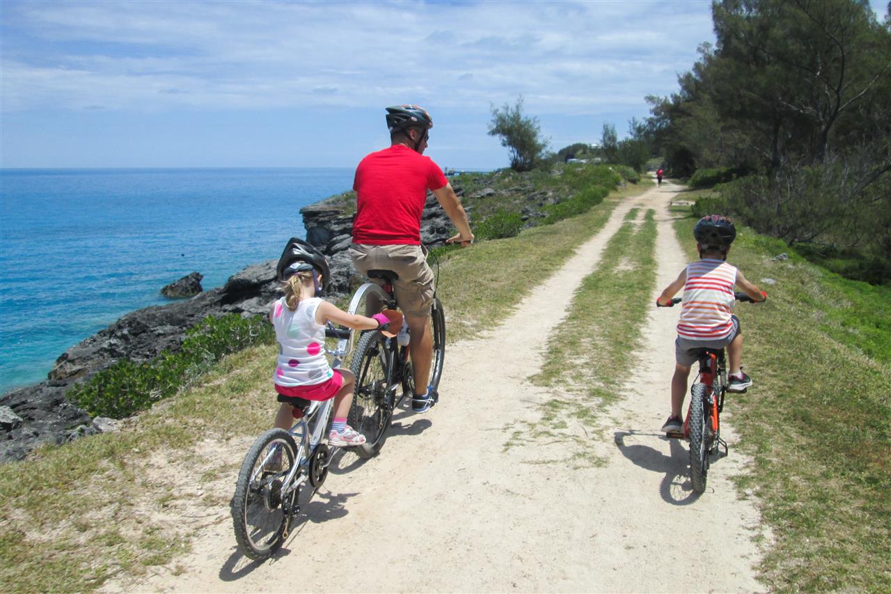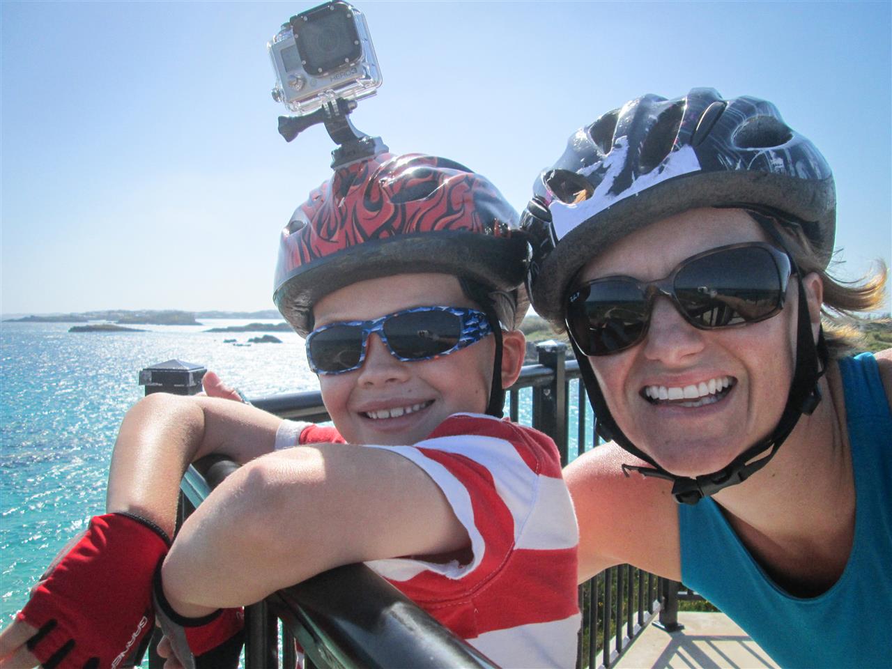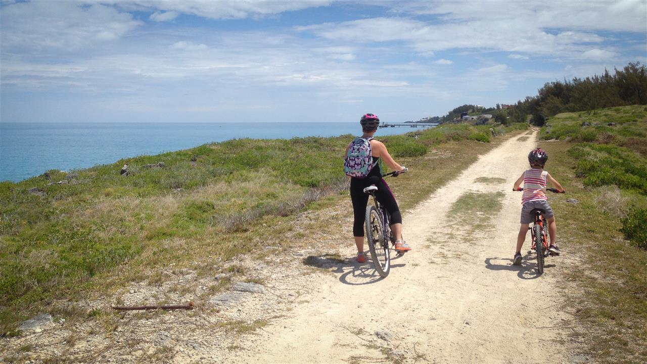 We started out just doing a few loops of our road in the evenings, Ryley really enjoyed the rides and was asking (whining?) for ‘another loop’. Our first bigger ride was out to Clearwater Beach just past the airport in St. David’s, where there are a fair amount of trails and paths suitable for Josh. Plus there is a huge parking lot for him to burn around in…!