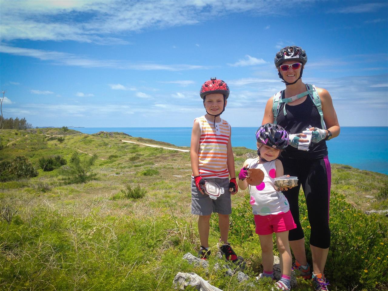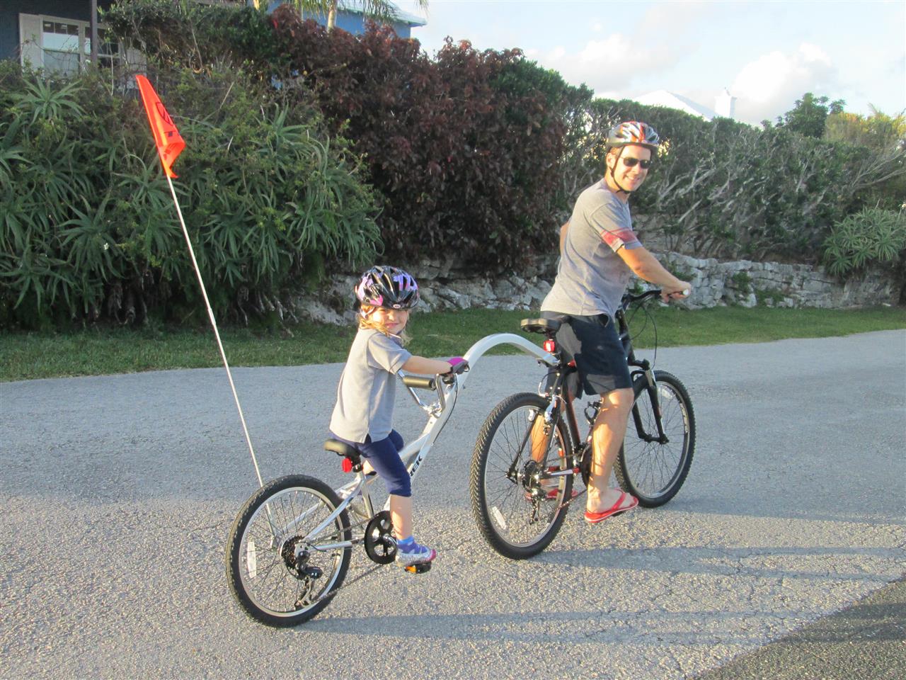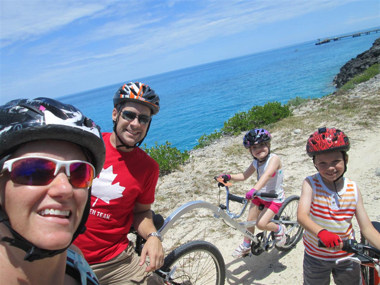 Jenn had been talking about us getting mountain bikes so that we could take the kids for bike rides around the island. So not long ago, we took a trip downtown and took the plunge! Jenn’s road bike simply would not do for riding on trails and Ryley needed a little more than a seat attached to one of ours (it would seem that Josh was really the only one who had a proper bike for the task!). Now Jenn and I are proud owners of new mountain bikes and Ryley has a ‘tag-along’ bike that attaches to my bike so she can help me pedal. ;0)